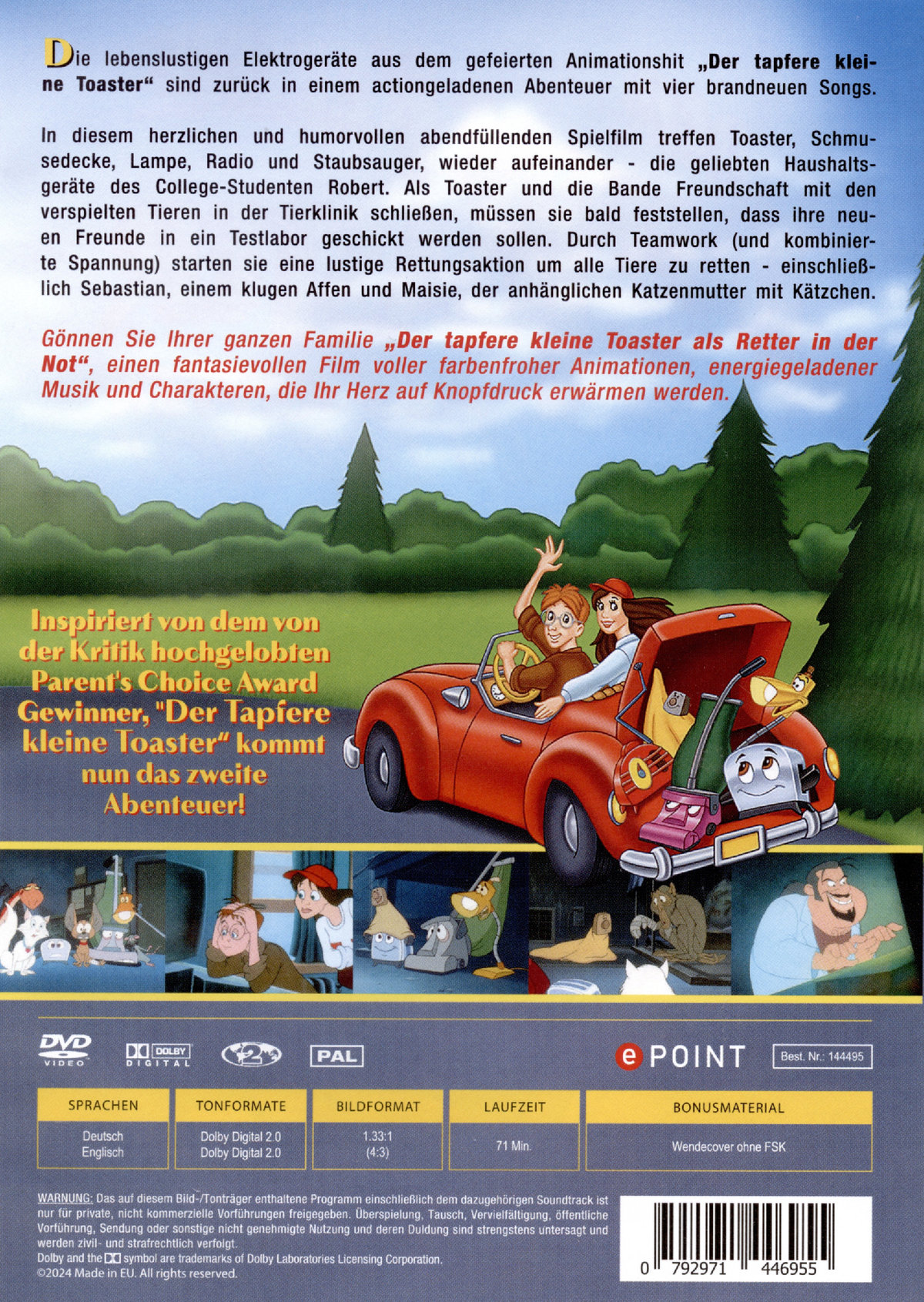 Die lebenslustigen Elektrogeräte aus dem gefeierten Animationshit "Der tapfere kleine Toaster" sind zurück in einem actiongeladenen Abenteuer mit vier brandneuen Songs.