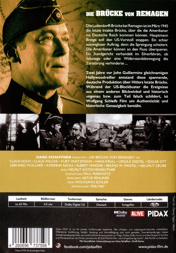 Produktinformationen "Die Brücke von Remagen / Spannende Verfilmung der berühmten Entscheidungsschlacht am Rhein (Pidax Historien-Klassiker) (DVD)"