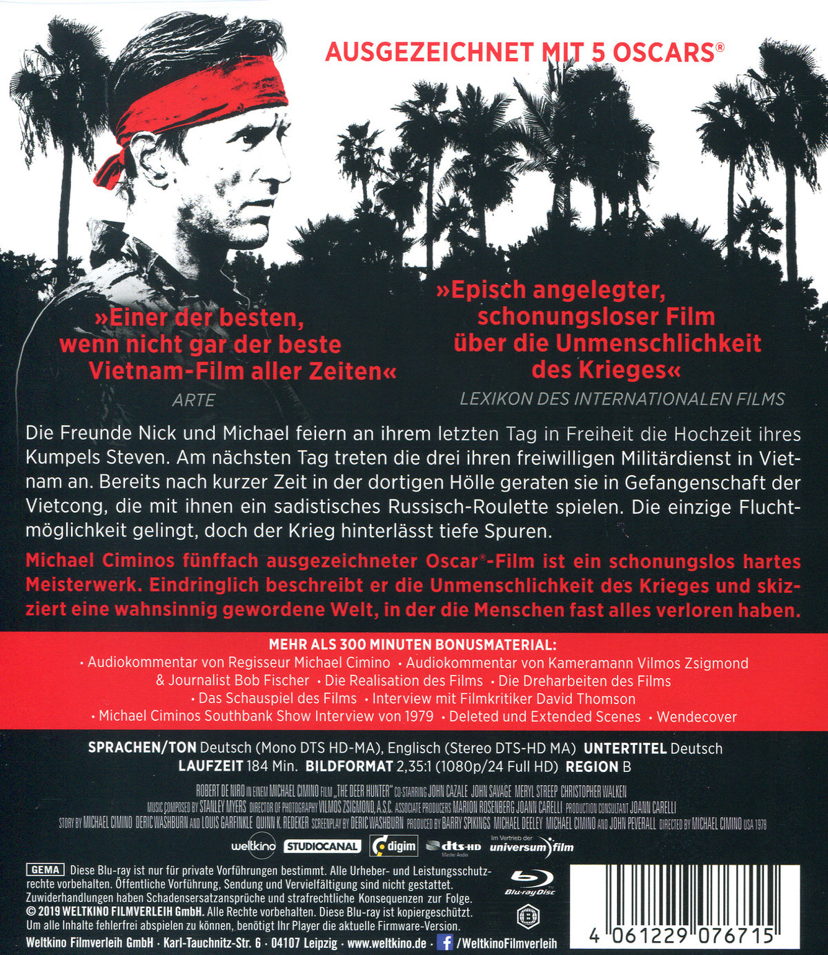 Ein eminent politischer Film und großes Kino: Die drei Freunde Michael, Nick und Steven erleben das Grauen im vietnamesischen Dschungel. Sie werden gefangen und müssen unter Drohungen russisches Roulette spielen.