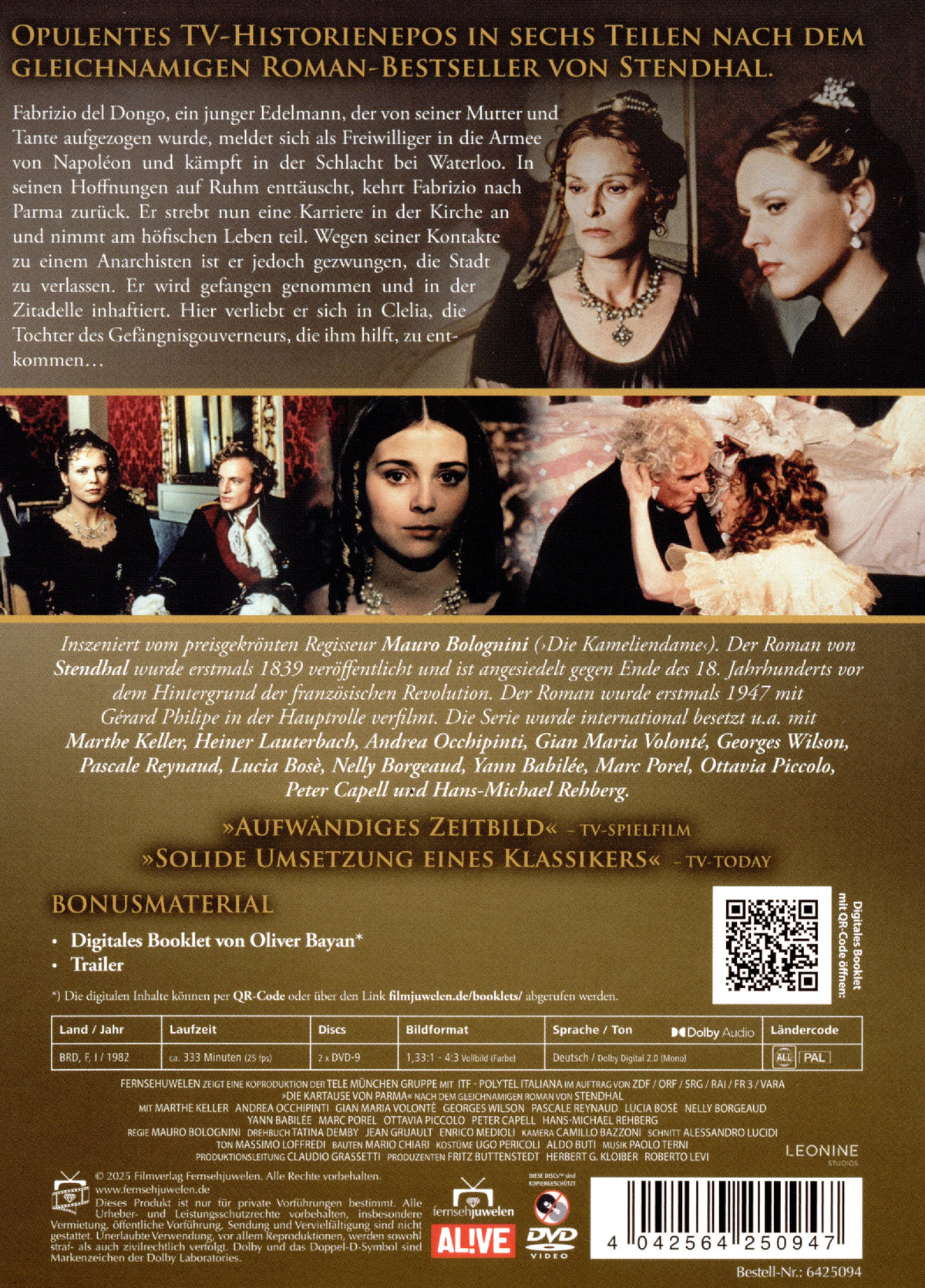 Produktinformationen "Die Kartause von Parma - Der komplette 6-Teiler (Fernsehjuwelen) [2 DVDs] (DVD)"