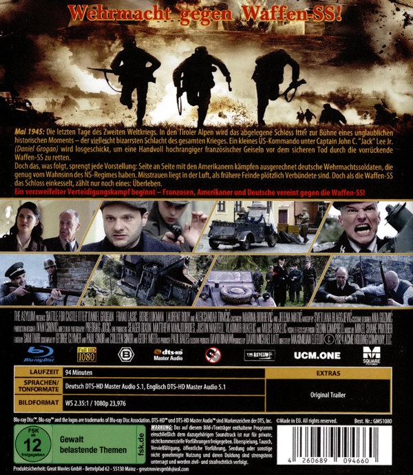 Mai 1945: Die letzten Tage des Zweiten Weltkriegs. In den Tiroler Alpen wird das abgelegene Schloss Itter zur Bühne eines unglaublichen historischen Moments – der vielleicht bizarrsten Schlacht des gesamten Krieges. Ein kleines US-Kommando unter Captain John C. "Jack" Lee Jr. (Daniel Grogan) wird losgeschickt, um eine Handvoll hochrangiger französischer Geiseln vor dem sicheren Tod durch die vorrückende Waffen-SS zu retten. Doch das, was folgt, sprengt jede Vorstellung: Seite an Seite mit den Amerikanern kämpfen ausgerechnet deutsche Wehrmachtssoldaten, die genug vom Wahnsinn des NS-Regimes haben. Misstrauen liegt in der Luft, als frühere Feinde plötzlich Verbündete sind. Doch als die Waffen-SS das Schloss einkesselt, zählt nur noch eines: Überleben. Ein verzweifelter Verteidigungskampf beginnt – Franzosen, Amerikaner und Deutsche vereint gegen die Waffen-SS!