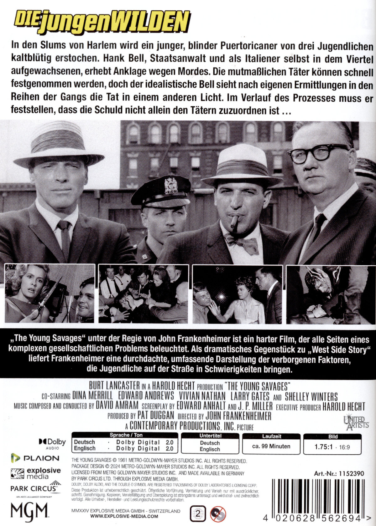 „Die jungen Wilden“ unter der Regie von John Frankenheimer ist ein harter Film, der alle Seiten eines komplexen gesellschaftlichen Problems beleuchtet. Als dramatisches Gegenstück zu „West Side Story“ liefert „Frankenheimer“ eine durchdachte, umfassende Darstellung der verborgenen Faktoren, die Jugendliche auf der Straße in Schwierigkeiten bringen. Was als einfacher, brutaler Mord an einem hilflosen Kind am helllichten Tag beginnt, entwickelt sich zu viel mehr, mit komplexen und unterschiedlichen Motiven und ohne einfache Antworten.