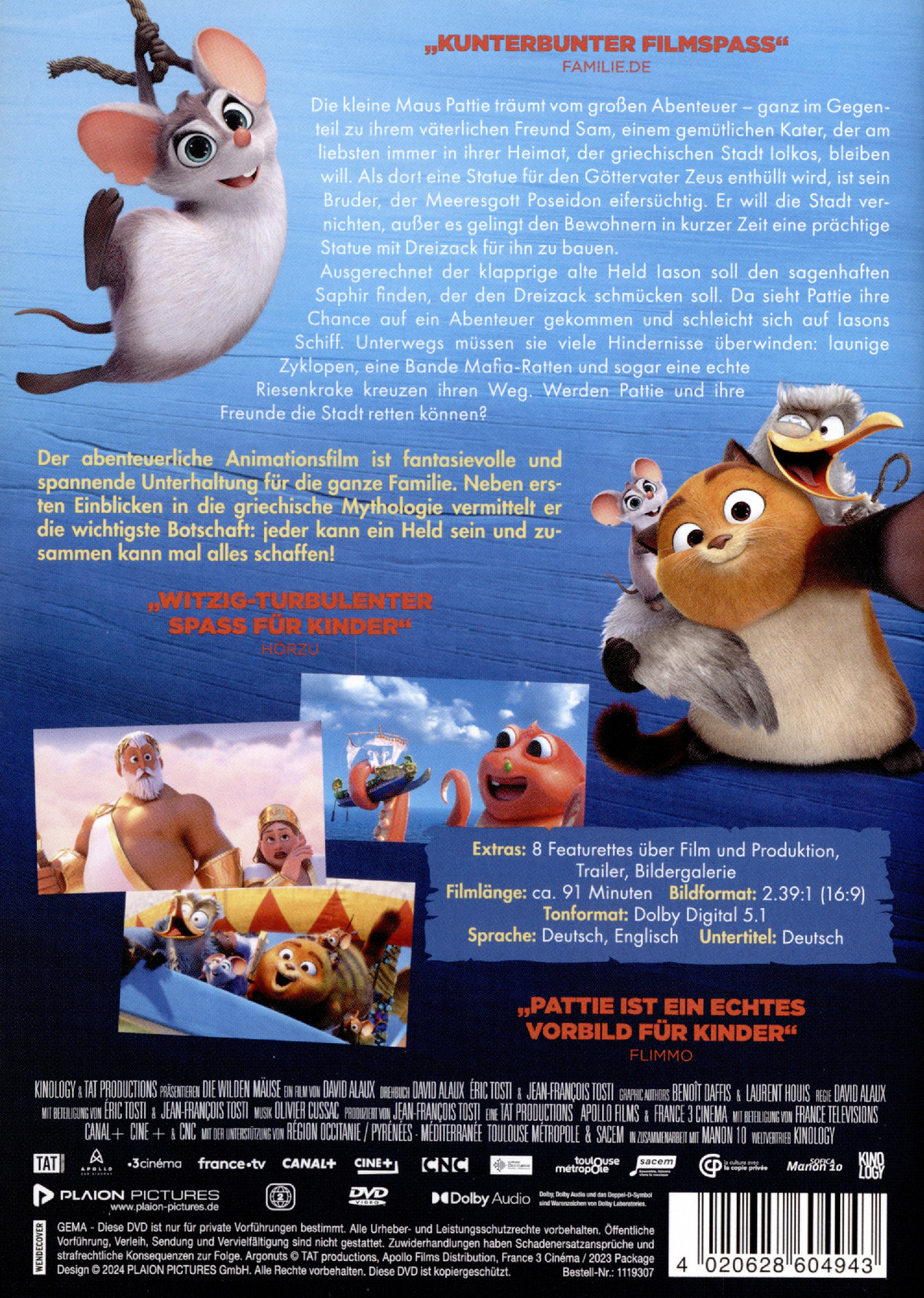 Die kleine Maus Pattie träumt vom großen Abenteuer – ganz im Gegenteil zu ihrem väterlichen Freund Sam, einem gemütlichen Kater, der am liebsten immer in ihrer Heimat, der griechischen Stadt Iolkos, bleiben will. Als dort eine Statue für den Göttervater Zeus enthüllt wird, ist sein Bruder, der Meeresgott Poseidon eifersüchtig. Er will die Stadt vernichten, außer es gelingt den Bewohnern in kurzer Zeit eine prächtige Statue mit Dreizack für ihn zu bauen. Ausgerechnet der klapprige alte Held Iason soll den sagenhaften Saphir finden, der den Dreizack schmücken soll. Da sieht Pattie ihre Chance auf ein Abenteuer gekommen und schleicht sich auf Iasons Schiff. Unterwegs müssen sie viele Hindernisse überwinden: launige Zyklopen, eine Bande Mafia-Ratten und sogar eine echte Riesenkrake kreuzen ihren Weg. Werden Pattie und ihre Freunde die Stadt retten können? Der abenteuerliche Animationsfilm ist fantasievolle und spannende Unterhaltung für die ganze Familie. Neben ersten Einblicken in die griechische Mythologie vermittelt er die wichtigste Botschaft: jeder kann ein Held sein und zusammen kann mal alles schaffen!