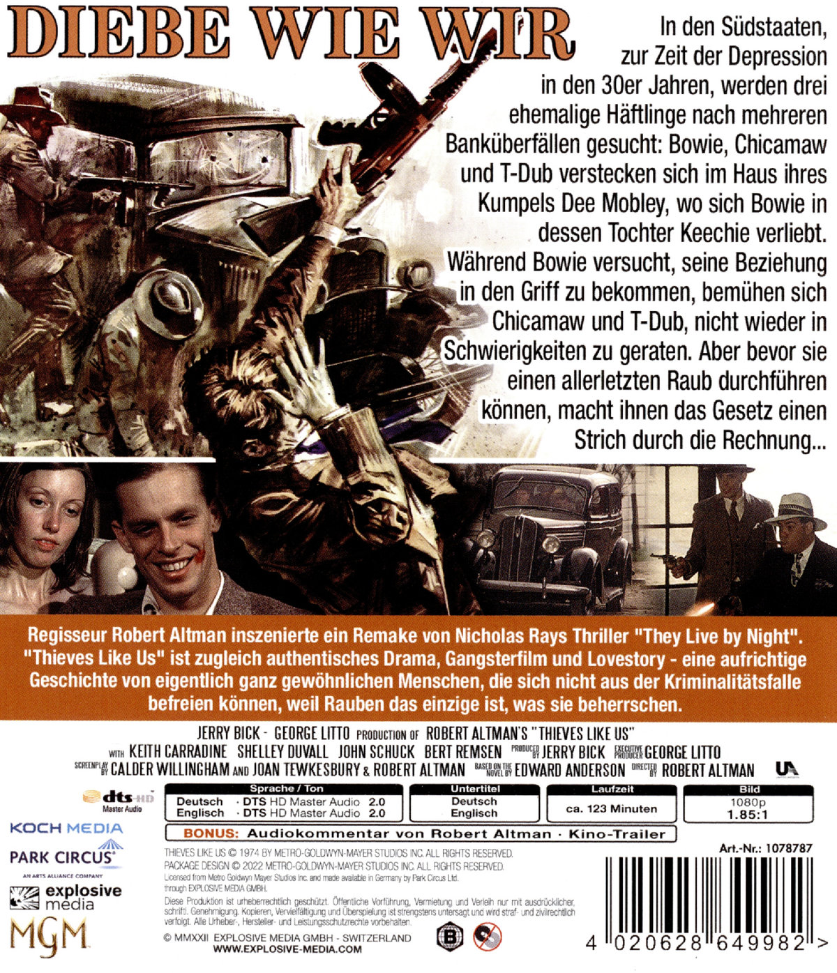 Regisseur Robert Altman inszenierte ein Remake von Nicholas Rays Thriller "Im Schatten der Nacht", der auf dem Roman von Raymond Chandler aus dem Jahr 1949 basiert. "Diebe wie wir" ist zugleich authentisches Drama, Gangsterfilm und Lovestory - eine aufrichtige Geschichte von eigentlich ganz gewöhnlichen Menschen, die sich nicht aus der Kriminalitätsfalle befreien können, weil Kriminalität das einzige ist, was sie beherrschen. In diesen Gaunerplot integrierte Altman eine "Romeo & Julia"-Radiosendung als ironischen und humorvollen Gegensatz zum Leinwandgeschehen.