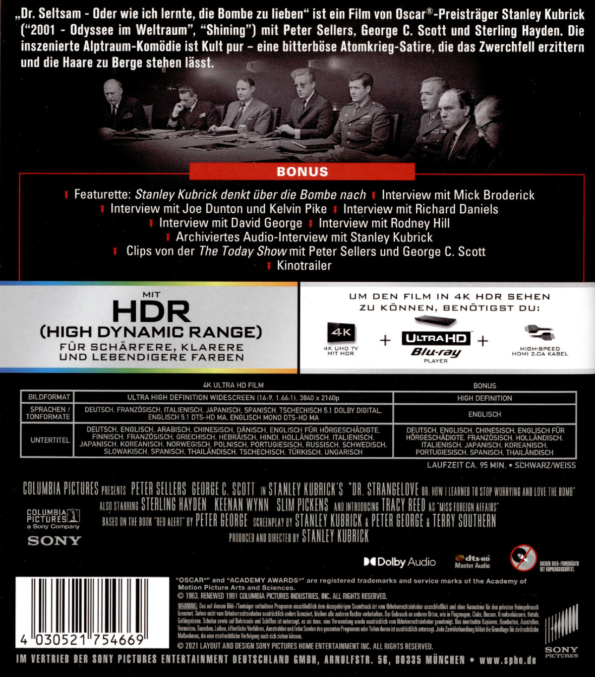Die von Oscar®-Preisträger Stanley Kubrick ("2001 - Odyssee im Weltraum", "Shining") inszenierte Alptraum-Komödie ist Kult pur - eine bitterböse Atomkrieg-Satire, die das Zwerchfell erzittern und die Haare zu Berge stehen lässt.