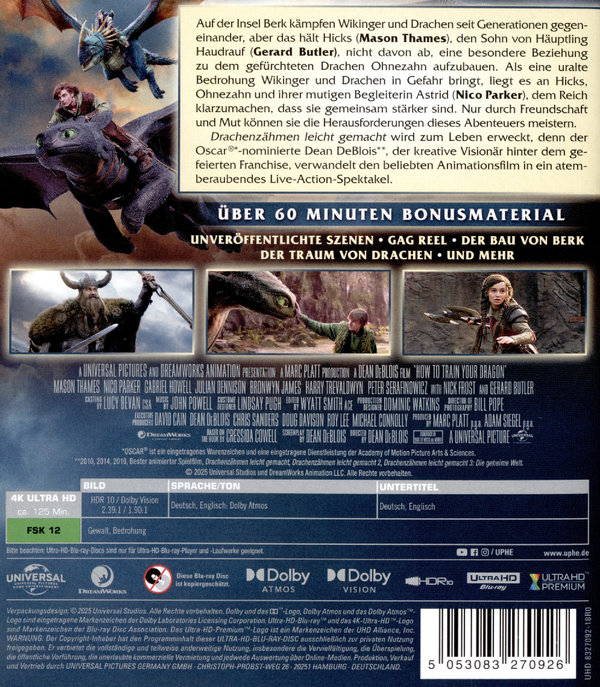 Über 60 Minuten Bonusmaterial: Unveröffentlichte Szenen,Gag Reel,Der Bau von Berk,Der Traum von Drachen,u.v.m.