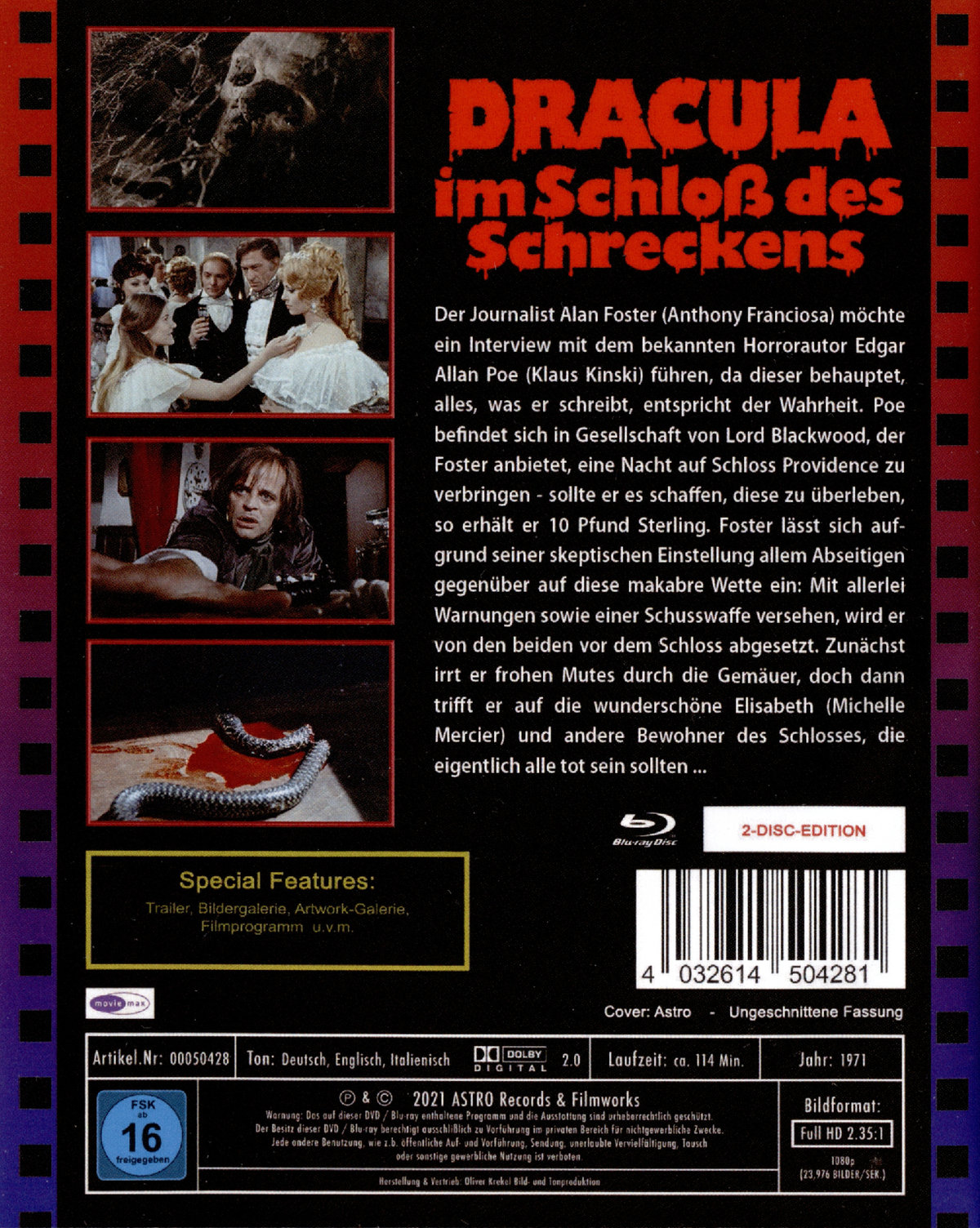Produktinformationen "Dracula im Schloß des Schreckens - 2 Blu-rays (Langfassung + Kinofassung) - Astro Design (limitiert auf 500 Stück in Full Sleeve Scanavo-Box) [2 BRs] (Blu-ray Disc)"