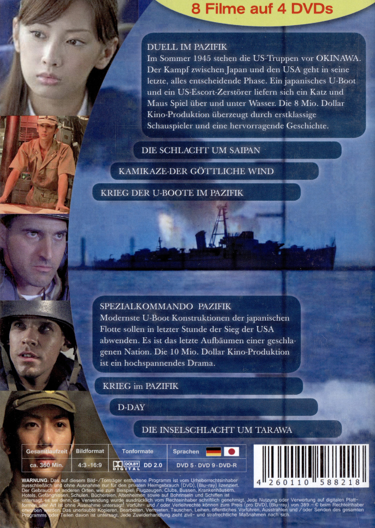 Die DVD Box enthält zusätzlich zum Spielfilm auch 7 Dokumentationen zur Schlacht vor Okinawa: