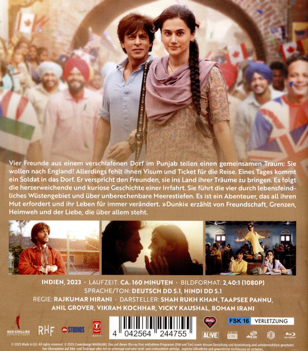 Vier Freunde aus einem verschlafenen Dorf im Punjab teilen einen gemeinsamen Traum: Sie wollen nach England! Allerdings fehlt ihnen Visum und Ticket für die Reise. Eines Tages kommt ein Soldat in das Dorf. Er verspricht den Freunden, sie ins Land ihrer Träume zu bringen. Es folgt die herzerweichende und kuriose Geschichte einer Irrfahrt. Sie führt die vier durch lebensfeindliches Wüstengebiet und über unberechenbare Meerestiefen. Es ist ein Abenteuer, das all ihren Mut erfordert und ihr Leben für immer verändert. »Dunki« erzählt von Freundschaft, Grenzen, Heimweh und der Liebe, die über allem steht.