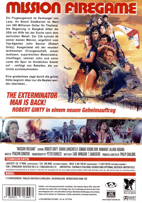 Endlich runter vom Index! Der Kultfilm mit ROBERT GINTY (Der Exterminator 1+2) in nie gesehener Bild- und Tonqualität erstmals auf DVD! Ein Flugzeug mit Gold im Wert von 200 Millionen Dollar wird in Thailand abgeschossen und landet im Dschungel. Ein engagiertes Agententeam wird zusammengestellt und eingesetzt, um nach dem Gold zu suchen und es zu bergen, das sich jetzt im Dschungel befindet.