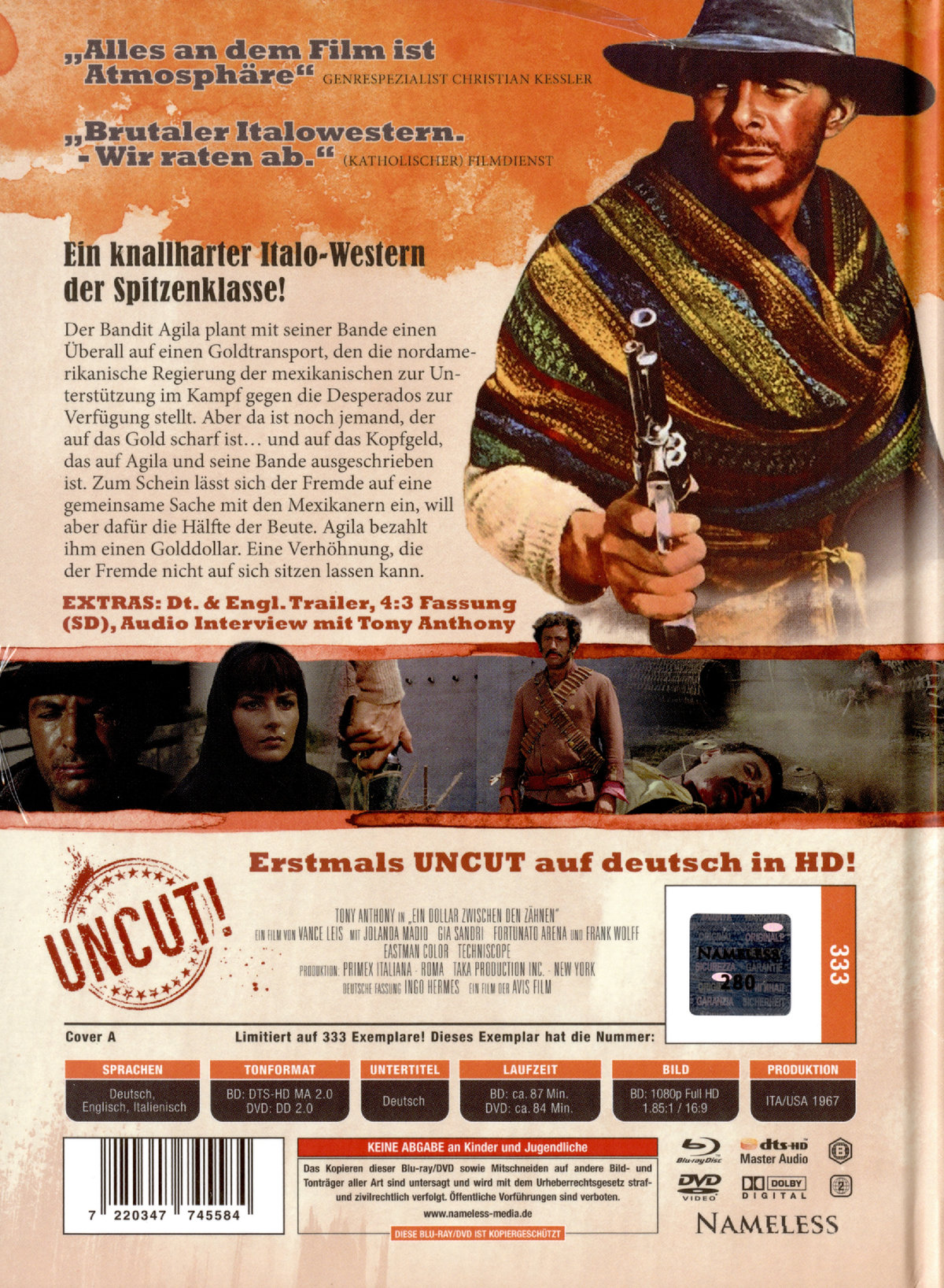 Ein knallharter Italo-Western der Spitzenklasse! Der Bandit Agila plant mit seiner Bande einen Überall auf einen Goldtransport, den die nordamerikanische Regierung der mexikanischen zur Unterstützung im Kampf gegen die Desperados zur Verfügung stellt. Aber da ist noch jemand, der auf das Gold scharf ist… und auf das Kopfgeld, das auf Agila und seine Bande ausgeschrieben ist. Zum Schein lässt sich der Fremde auf eine gemeinsame Sache mit den Mexikanern ein, will aber dafür die Hälfte der Beute. Agila bezahlt ihm einen Golddollar. Eine Verhöhnung, die der Fremde nicht auf sich sitzen lassen kann. Extras: Dt. & Engl. Trailer, 4:3 Fassung (SD), Audio Interview mit Tony Anthony