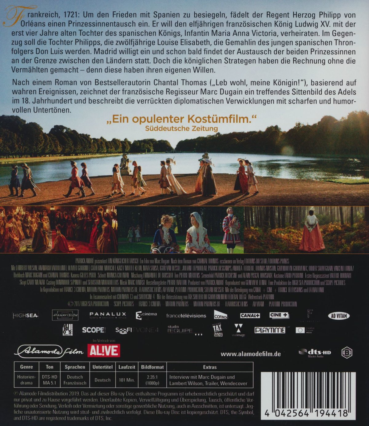 Frankreich 1721: Um den Frieden mit Spanien zu besiegeln, fädelt der Regent Herzog Philipp von Orléans einen Prinzessinnentausch ein. Er will den elfjährigen französischen König Ludwig XV. mit der erst vier Jahre alten Tochter des spanischen Königs, Infantin Maria Anna Victoria, verheiraten. Im Gegenzug soll die Tochter Philipps, die zwölfjährige Louise Elisabeth, die Gemahlin des jungen spanischen Thronfolgers Don Luis werden. Madrid willigt ein und schon bald findet der Austausch der beiden Prinzessinnen an der Grenze zwischen den Ländern statt. Doch die königlichen Strategen haben die Rechnung ohne die Vermählten gemacht - denn diese haben ihren eigenen Willen. Nach einem Roman von Bestsellerautorin Chantal Thomas ("Leb wohl, meine Königin!") basierend auf wahren Ereignissen, zeichnet der französische Regisseur Marc Dugain ein treffendes Sittenbild des Adels im 18. Jahrhundert und beschreibt die verrückten diplomatischen Verwicklungen mit scharfen und humorvollen Untertönen. "Ein königlicher Tausch" ist ein mitreißendes und emotionales Historiendrama, das durch eine aufwändige Ausstattung und prachtvolle Kostüme beeindruckt.