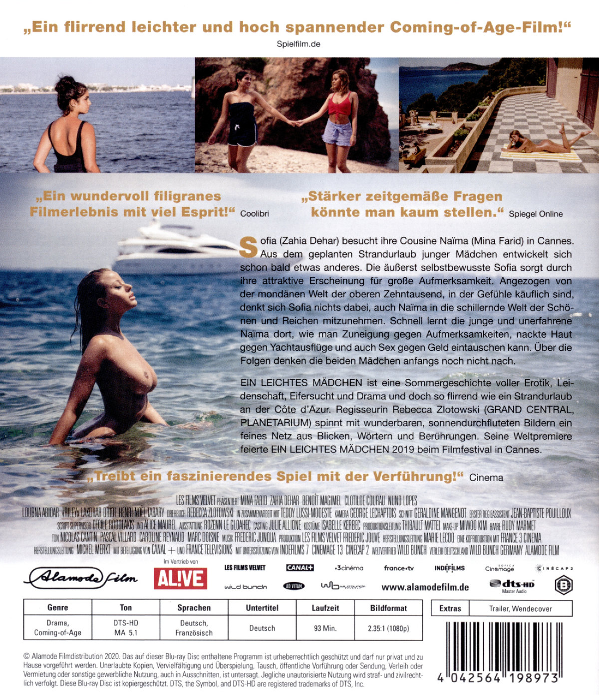 Naïma (Mina Farid) ist gerade 16 geworden und ein ganz normales Teenager-Mädchen. Sie lebt mit ihrer Mutter in bescheidenen Verhältnissen in Cannes, hat ihren Schulabschluss in der Tasche - und das Leben noch vor sich. Was sie damit anfangen soll, weiß sie allerdings nicht. Vor dem ersten Job und all dem, was danach kommt, scheint ein endlos langer, heißer Sommer zu liegen. Da taucht unerwartet ihre ältere Cousine Sofia (Zahia Dehar) aus Paris auf. Nach dem Tod ihrer Mutter sucht diese in Naïma eine vertraute Freundin und nimmt das junge Mädchen kurzerhand unter ihre Fittiche. Mit ihren 22 Jahren wirkt Sofia so welterfahren, ja fast schon zynisch, wie Naïma unschuldig. Angezogen von der mondänen Welt der Oberen Zehntausend, in der Gefühle käuflich sind und als Devise "Mehr Schein als Sein" gilt, denkt sich Sofia nichts dabei, auch Naïma in die schillernde Wohlstandsgesellschaft mitzunehmen. Als sie durch gekonnten Einsatz all ihrer Reize einem reichen Yachtbesitzer näherkommt, tappst Naïma wie ein junges Kätzchen hinter Sofia her. Was für ein entscheidender Sommer den beiden bevorsteht, ahnen sie da noch nicht ... Newcomerin Mina Farid schlüpft mit bemerkenswerter Natürlichkeit und Reife in die Haut der jungen Naïma, die längst nicht so naiv ist, wie es auf Anhieb scheint. Zahia Dehar, eine von Frankreichs bekanntesten und zwiespältigsten Persönlichkeiten - mit 17 zentrale Figur eines öffentlichen Skandals, dann Muse von Karl Lagerfeld, schließlich Designerin - legt Sofia als sinnliche, selbstbewusste Mischung zwischen großer Schwester und Objekt der Begierde an. Zwei schillernde Frauenfiguren auf abenteuerlicher Reise, bei der es ganz nebenbei ums Erwachsenwerden und echte Freundschaft geht. Seine Weltpremiere feierte "Ein leichtes Mädchen" 2019 beim Filmfestival in Cannes in der Sektion Quinzaine des Réalisateurs, wo er mit dem Prix SACD ausgezeichnet wurde. Auf dem diesjährigen Filmfest München feierte der Film seine Deutschlandpremiere.