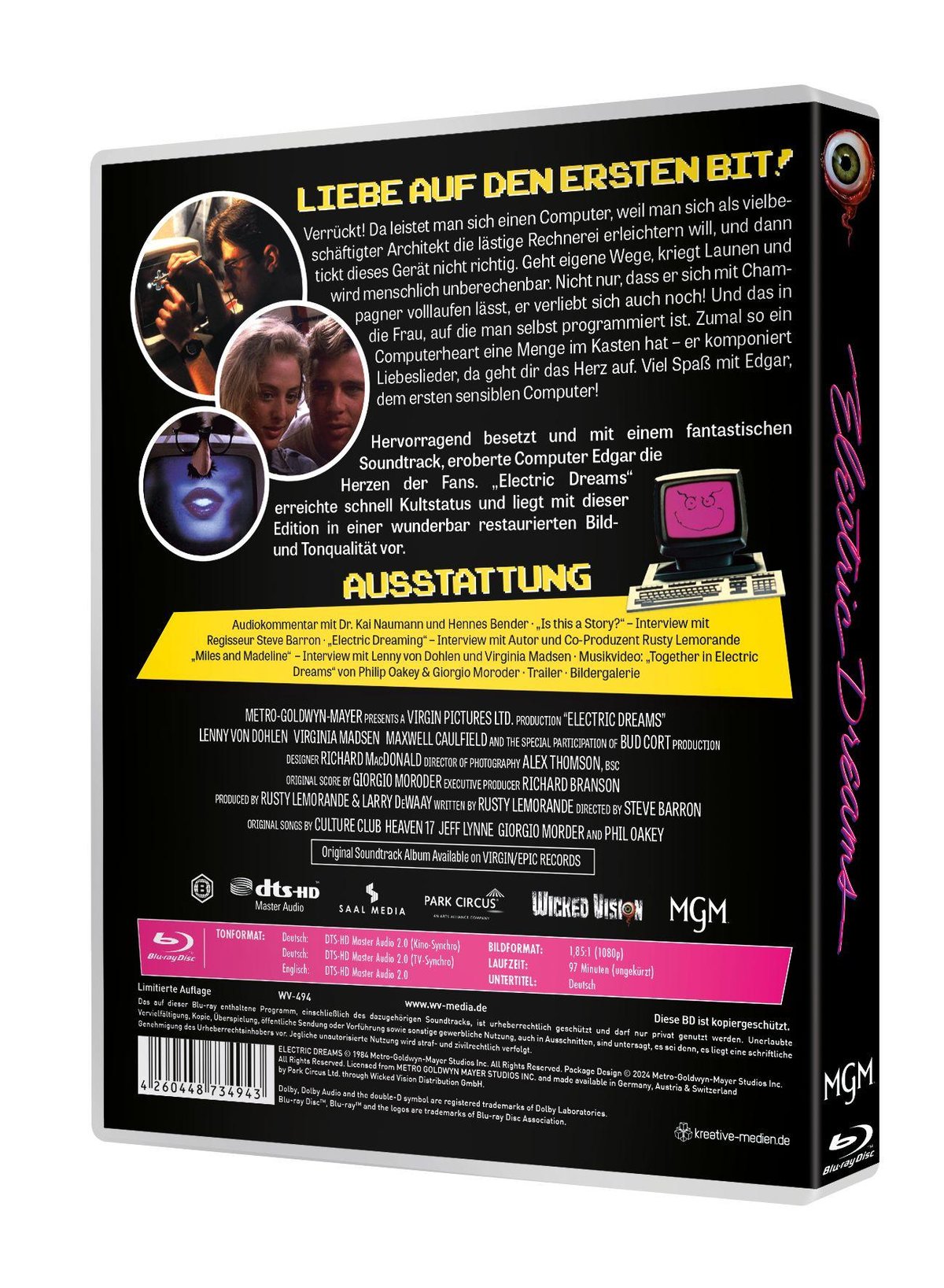 Hervorragend besetzt und mit einem fantastischen Soundtrack, eroberte Computer Edgar die Herzen der Fans. „Electric Dreams“ erreichte schnell Kultstatus und liegt mit dieser Edition in einer wunderbar restaurierten Bild und Tonqualität vor.