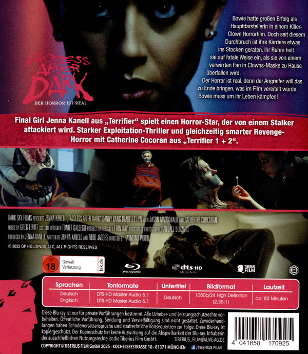 Bowie hatte großen Erfolg als Hauptdarstellerin in einem Killer-Clown Horrorfilm. Doch seit diesem Durchbruch ist ihre Karriere etwas ins Stocken geraten. Ihr Ruhm holt sie auf fatale Weise ein, als sie von einem verwirrten Fan in Clowns-Maske zu Hause überfallen wird. Der Horror ist real, denn der Angreifer will das zu Ende bringen, was im Film vereitelt wurde. Bowie muss um ihr Leben kämpfen!