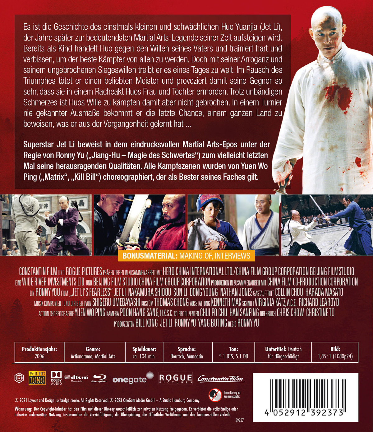 Superstar Jet Li beweist in dem eindrucksvollen Martial Arts-Epos unter der Regie von Ronny Yu („Jiang-Hu – Magie des Schwertes“) zum vielleicht letzten Mal seine herausragenden Qualitäten. Alle Kampfszenen wurden von Yuen Wo Ping („Matrix“, „Kill Bill“) choreographiert, der als Bester seines Faches gilt.