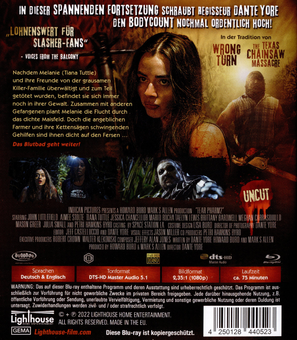 Nachdem Melanie (Tiana Tuttle) und ihre Freunde von der grausamen Killer-Familie überwältigt und zum Teil getötet wurden, befindet sie sich immer noch in ihrer Gewalt. Zusammen mit anderen Gefangenen plant Melanie die Flucht durch das dichte Maisfeld. Doch die angeblichen Farmer und ihre Kettensägen schwingenden Gehilfen sind ihnen dicht auf den Fersen … Das Blutbad geht weiter!