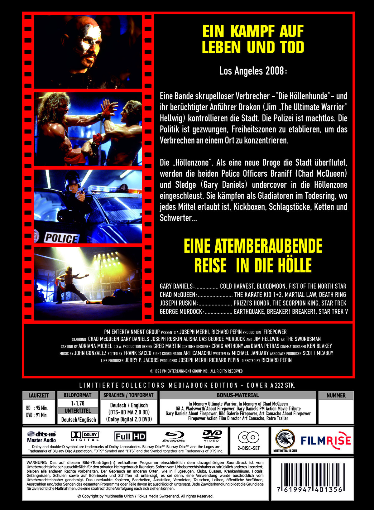Eine Bande skrupelloser Verbrecher -"Die Höllenhunde"- und ihr berüchtigter Anführer Drakon (Jim "The Ultimate Warrior" Hellwig) kontrollieren die Stadt. Die Polizei ist machtlos. Die Politik ist gezwungen, Freiheitszonen zu etablieren, um das Verbrechen an einem Ort zu konzentrieren. Die "Höllenzone". Als eine neue Droge die Stadt überflutet, werden die beiden Police Officers Braniff (Chad McQueen) und Sledge (Gary Daniels) undercover in die Höllenzone eingeschleust. Sie kämpfen als Gladiatoren im Todesring, wo jedes Mittel erlaubt ist, Kickboxen, Schlagstöcke, Ketten und Schwerter...