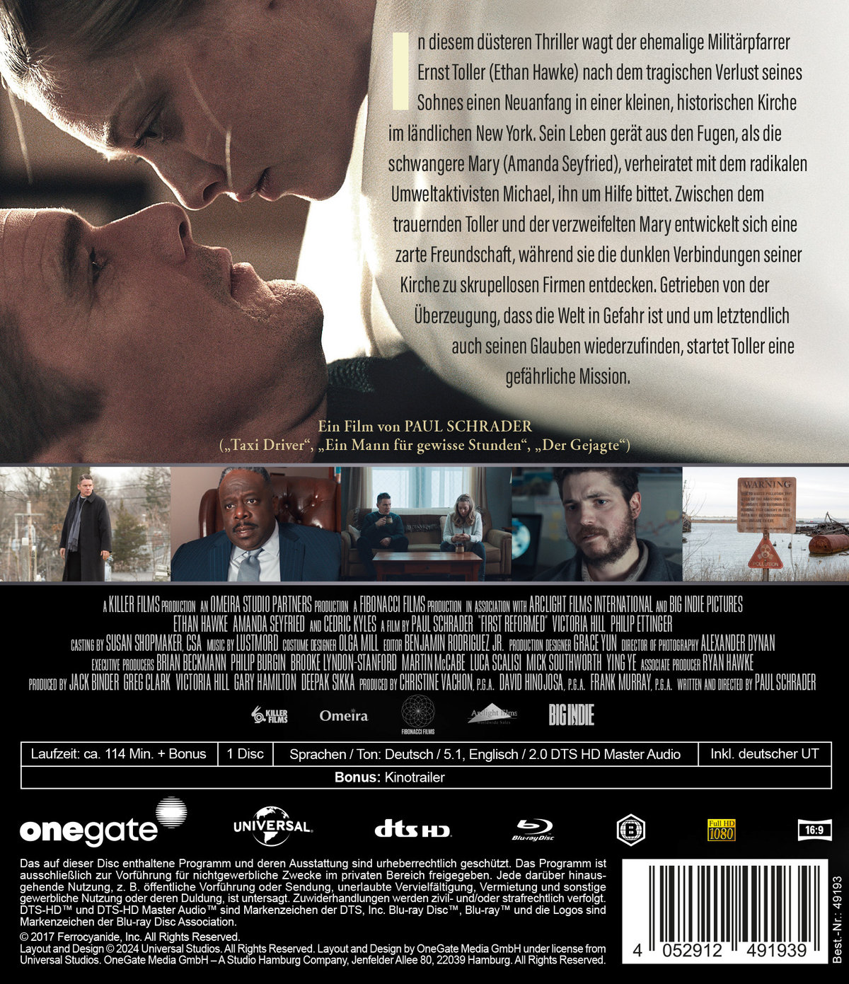 In diesem düsteren Thriller wagt der ehemalige Militärpfarrer Ernst Toller (Ethan Hawke) nach dem tragischen Verlust seines Sohnes einen Neuanfang in einer kleinen, historischen Kirche im ländlichen New York. Sein Leben gerät aus den Fugen, als die schwangere Mary (Amanda Seyfried), verheiratet mit dem radikalen Umweltaktivisten Michael, ihn um Hilfe bittet.