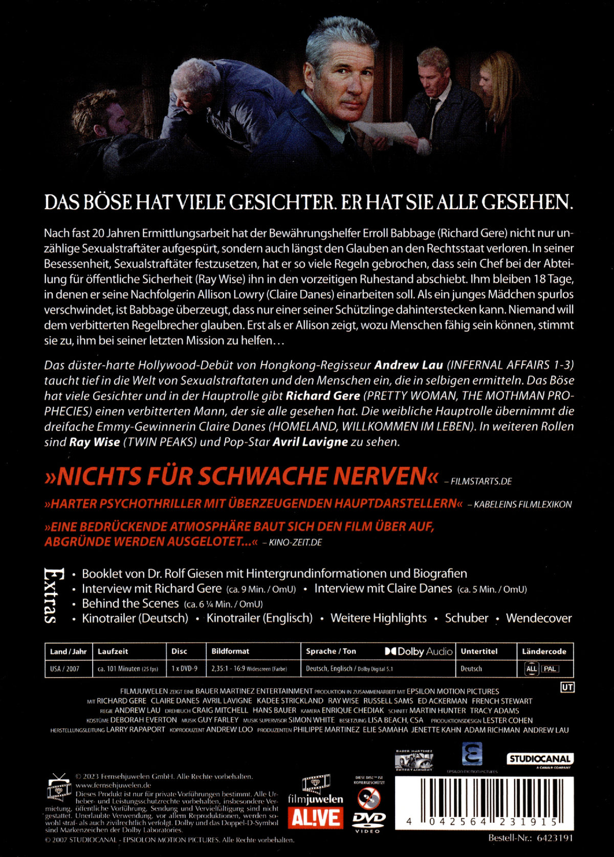 Nach fast 20 Jahren Ermittlungsarbeit hat der Bewährungshelfer Erroll Babbage (Richard Gere) nicht nur unzählige Sexualstraftäter aufgespürt, sondern auch längst den Glauben an den Rechtsstaat verloren. In seiner Besessenheit, Sexualstraftäter festzusetzen, hat er so viele Regeln gebrochen, dass sein Chef bei der Abteilung für öffentliche Sicherheit (Ray Wise) ihn in den vorzeitigen Ruhestand abschiebt. Ihm bleiben 18 Tage, in denen er seine Nachfolgerin Allison Lowry (Claire Danes) einarbeiten soll.
