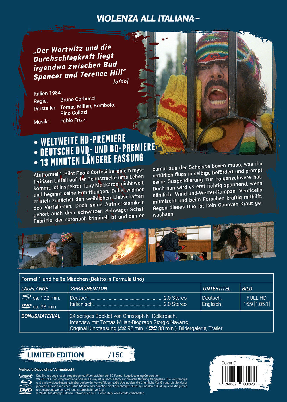 24-seitiges Booklet von Christoph N. Kellerbach;Interview mit Tomas Milian-Biograph Giorgio Navaro;Original Kinofassung;Bildergalerie;Trailer; Laufzeit DVD ca. 98 Minuten;
