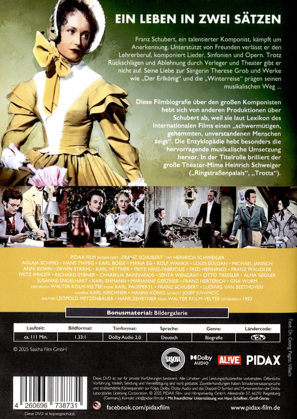Produktinformationen "Franz Schubert - Ein unvollendetes Leben / Hervorragende Filmbiografie über den großen Komponisten (Pidax Historien-Klassiker) (DVD)"