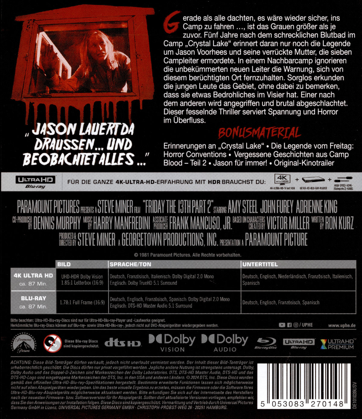 Enthält 4K UHD & Blu-ray , Erinnerungen an "Crystal Lake",Die Legende vom Freitag: Horror-Conventions,Vergessene Geschichten aus Camp Blood - Teil 2,Jason für immer,Originalkinotrailer