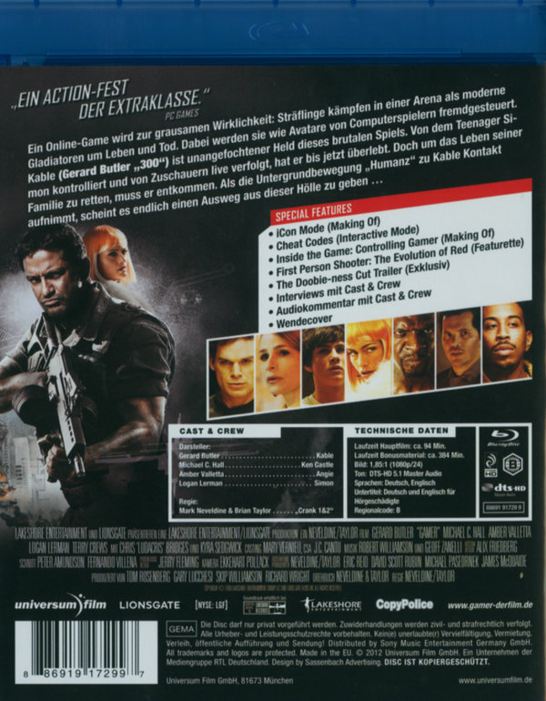 Produktinformationen "Gamer - Extended Uncut Version (blu-ray)"