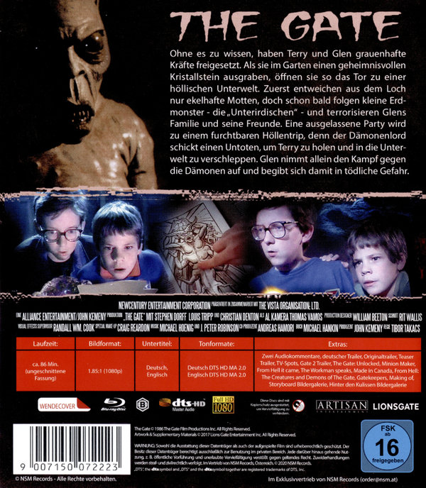 Zwei Audiokommentare;Deutscher Trailer; Originaltrailer; Teaser & Trailer; TV-Spots; Gate 2 Trailer;Minion Maker; From Hell it came; The Workman speaks; Made in Canada; From Hell: The Creatures and Demons of The Gate; Gatekeepers; Making of; Storyboard Bildergalerie; Hinter den Kulissen Bildergalerie; Wendecover;