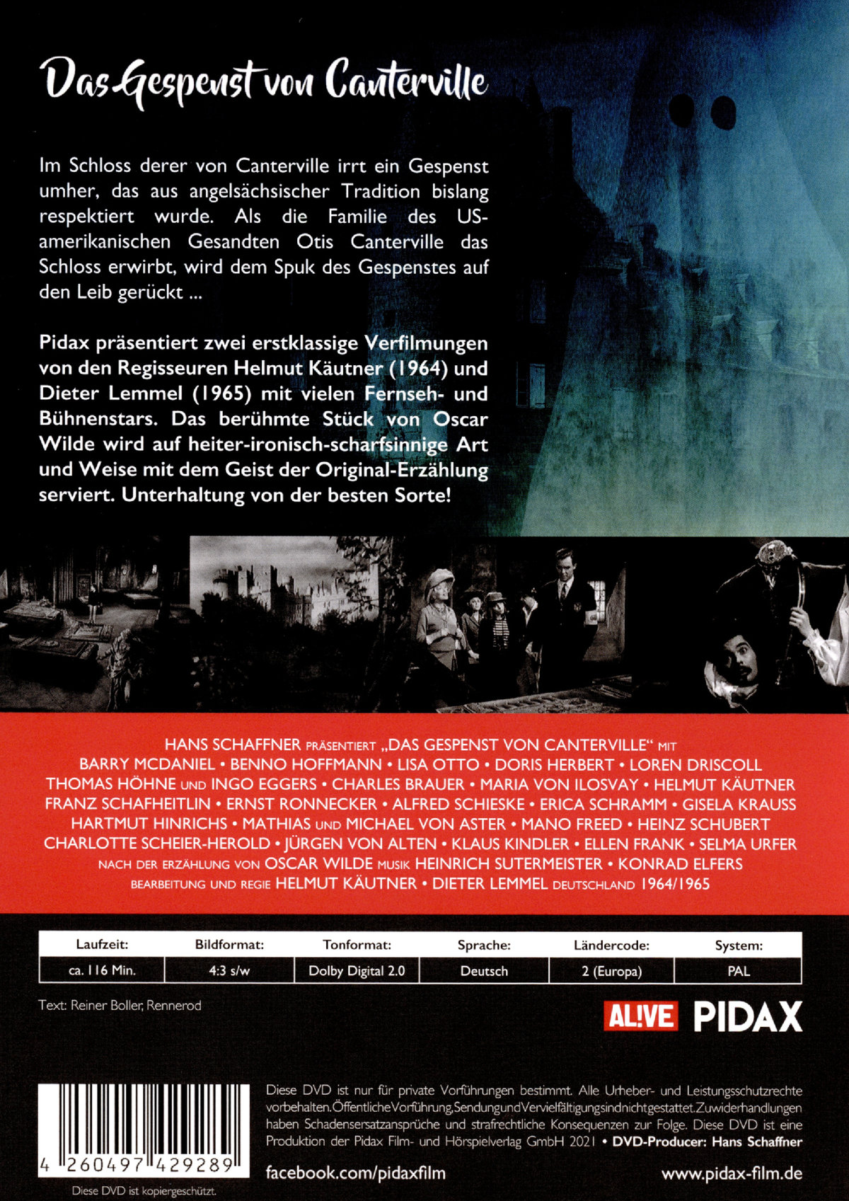 Pidax präsentiert zwei erstklassige Verfilmungen von den Regisseuren Helmut Käutner (1964) und Dieter Lemmel (1965) mit vielen Fernseh- und Bühnenstars. Das berühmte Stück von Oscar Wilde wird auf heiter-ironisch-scharfsinnige Art und Weise mit dem Geist der Original-Erzählung serviert. Unterhaltung von der besten Sorte!