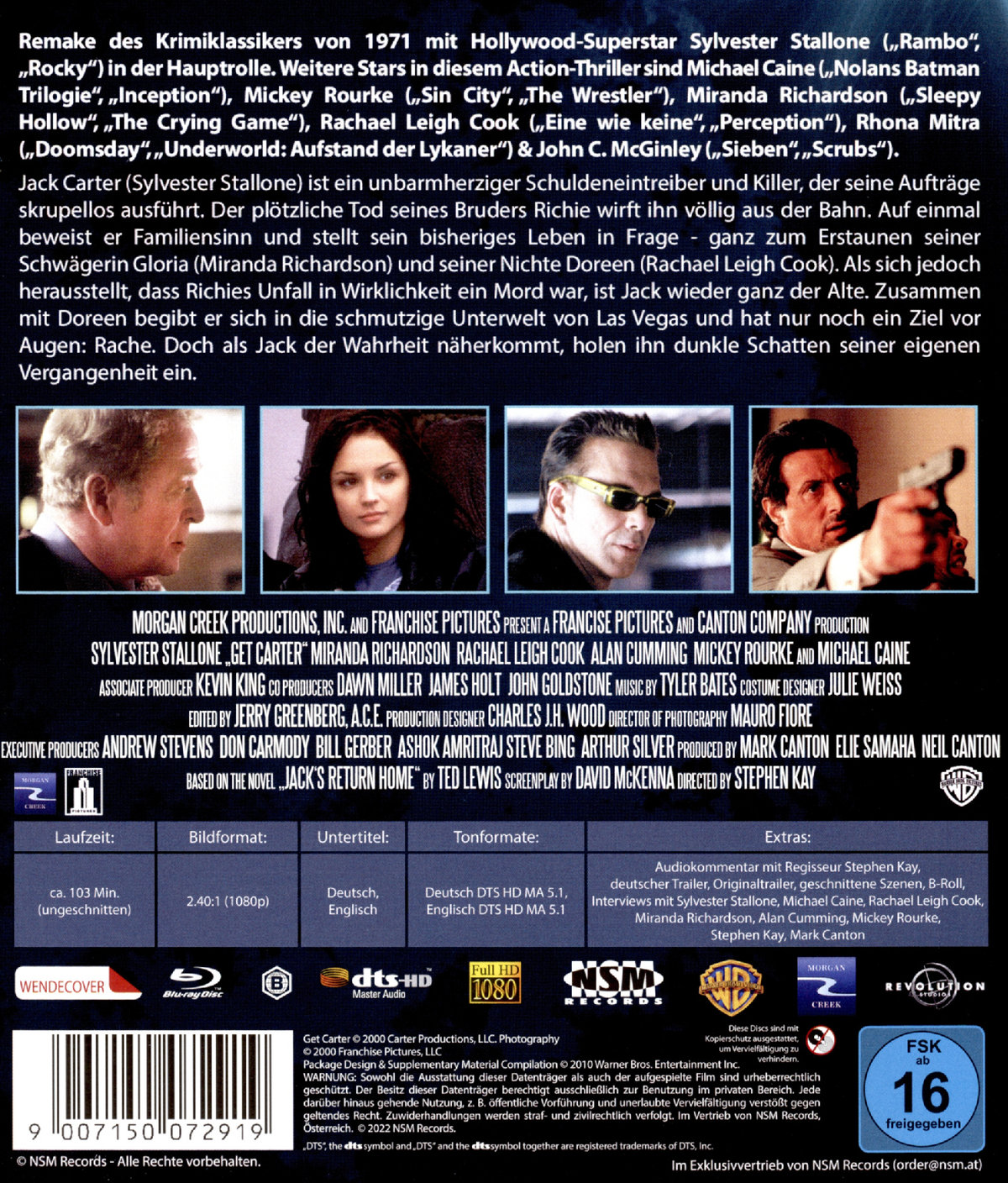 Remake des Krimiklassikers von 1971 mit Hollywood Superstar Sylvester Stallone („Rambo“, „Rocky“) in der Hauptrolle. Weitere Stars in diesem Action-Thriller sind Michael Caine („Nolans Batman Trilogie“, „Inception“), Mickey Rourke („Sin City“, „The Wrestler“), Miranda Richardson („Sleepy Hollow“, „The Crying Game“), Rachael Leigh Cook („Eine wie keine“, „Perception“), Rhona Mitra („Doomsday“, „Underworld: Aufstand der Lykaner“) & John C. McGinley („Sieben“, „Scrubs“).