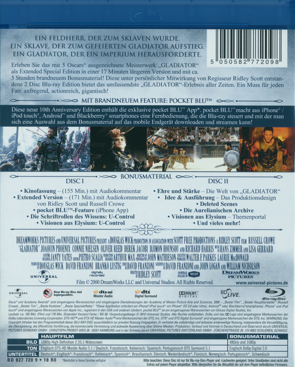 Produktinformationen "Gladiator - 10th Anniversary Edition (blu-ray)"