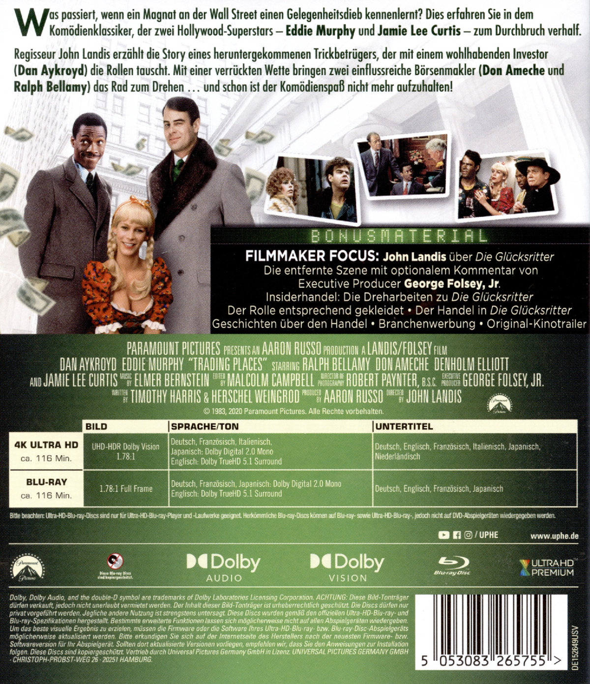 Ein turbulenter Komödienklassiker!Was passiert, wenn ein Magnat an der Wall Street einen Gelegenheitsdieb kennenlernt? Dies erfahren sie in dem Komödienklassiker, der zwei Hollywood-Superstars - Eddie Murphy und Jamie Lee Curtis - zum Durchbruch ihrer Karriere verholfen hat.Regisseur John Landis erzählt die Story eines heruntergekommenen Trickbetrügers, der mit einem wohlhabenden Investor (Dan Aykroyd) die Rollen tauscht. Mit einer verrückten Wette bringen zwei einflussreiche Börsenmakler (Don Ameche und Raph Bellamy) das Rad zum Drehen ... und schon ist der Komödienspaß nicht mehr aufzuhalten!