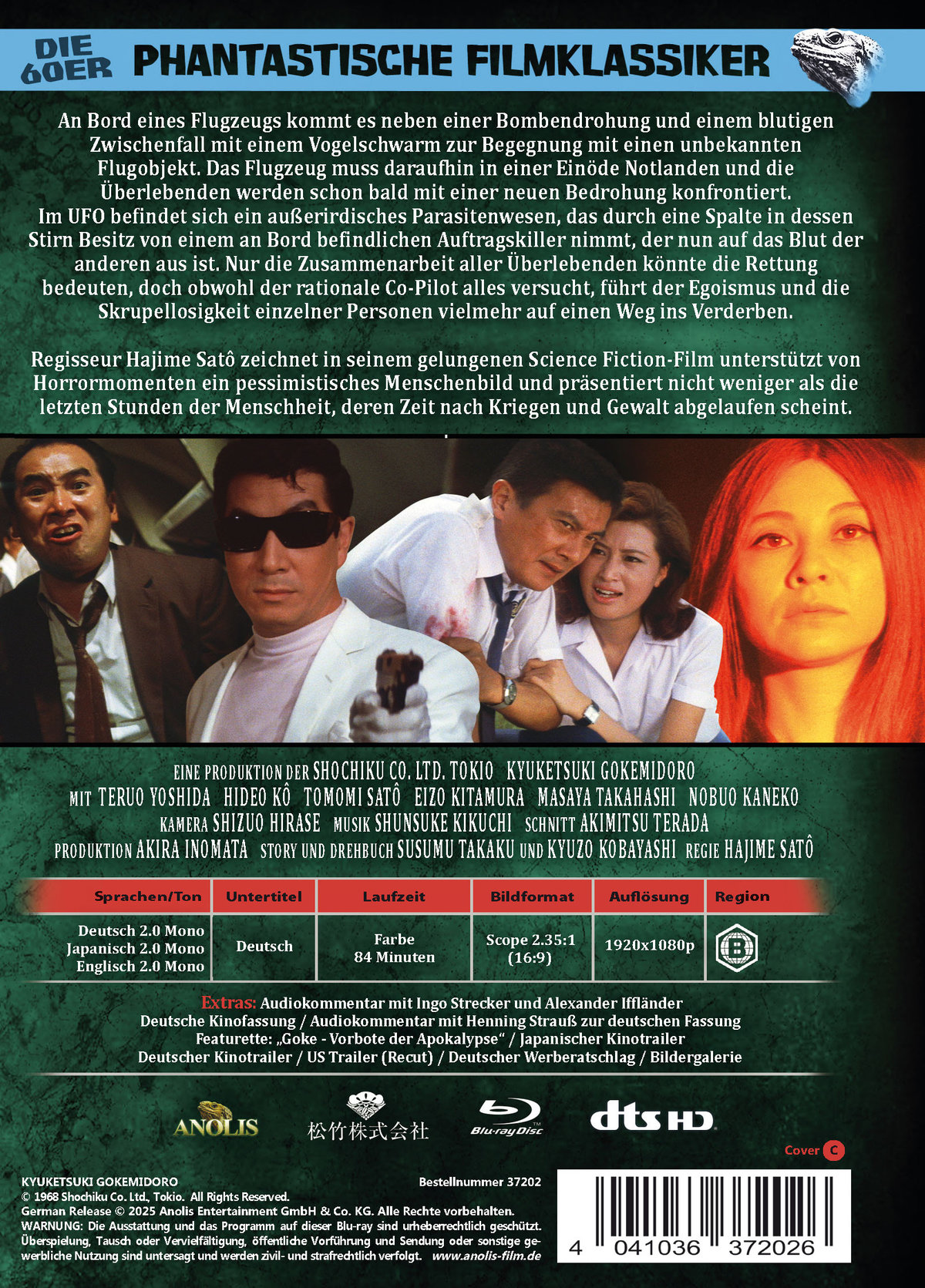 An Bord eines Flugzeugs kommt es neben einer Bombendrohung und einem blutigen Zwischenfall mit einem Vogelschwarm zur Begegnung mit einem unbekannten Flugobjekt. Das Flugzeug muss daraufhin in einer Einöde notlanden und die Überlebenden werden schon bald mit einer neuen Bedrohung konfrontiert. Im UFO befindet sich ein außerirdisches Parasitenwesen, das durch eine Spalte in dessen Stirn Besitz von einem an Bord befindlichen Auftragskiller nimmt, der nun auf das Blut der anderen aus ist. Nur die Zusammenarbeit aller Überlebenden könnte die Rettung bedeuten, doch obwohl der rationale Co-Pilot alles versucht, führt der Egoismus und die Skrupellosigkeit einzelner Personen vielmehr auf einen Weg ins Verderben. Regisseur Hajime Satô zeichnet in seinem gelungenen Science Fiction-Film unterstützt von Horrormomenten ein pessimistisches Menschenbild und präsentiert nicht weniger als die letzten Stunden der Menschheit, deren Zeit nach Kriegen und Gewalt abgelaufen scheint.