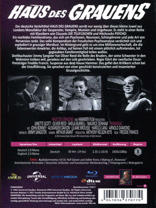 Der deutsche Titel HAUS DES GRAUENS verrät nicht viel über dieses kleine Juwel aus Londons Manufaktur der Geister, Vampire, Mumien und Ungeheuer. Es steht in einer Reihe mit Klassikern wie Clouzots DIE TEUFLISCHEN und Hitchcocks PSYCHO: