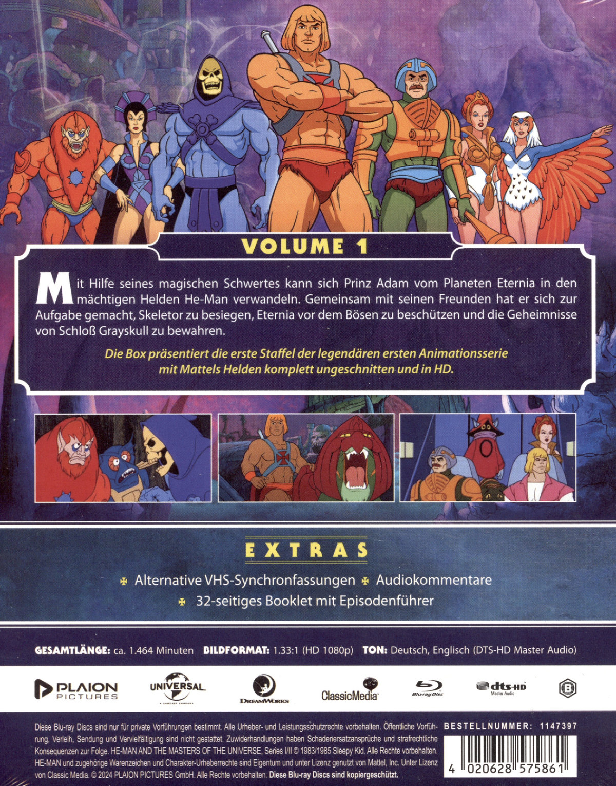 Die Box präsentiert die erste Staffel der legendären ersten Animationsserie mit Mattels Helden komplett ungeschnitten und in HD.