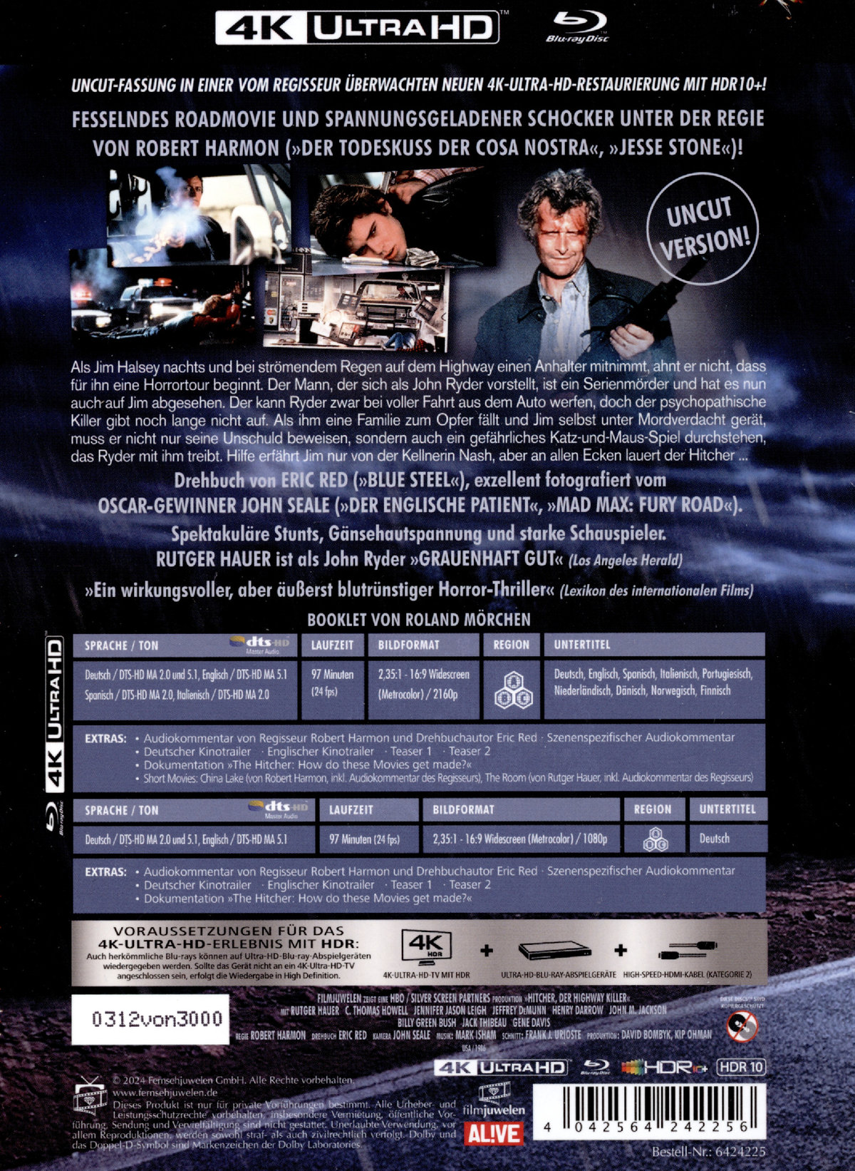 Hitcher - Der Highway Killer - Uncut Mediabook Edition (4K Ultra HD+blu-ray)