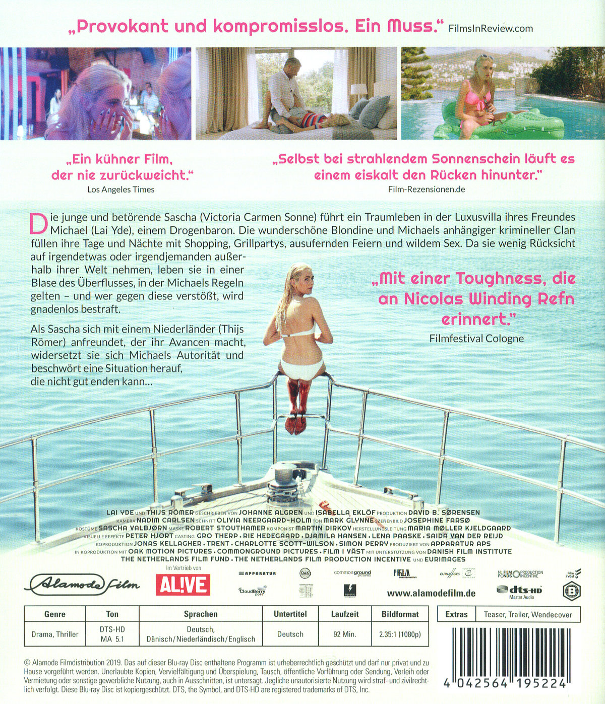 Die junge und betörende Sascha (Victoria Carmen Sonne) führt ein Traumleben in der Luxusvilla ihres Freundes Michael (Lai Yde), einem Drogenbaron. Die wunderschöne Blondine und Michaels anhängiger krimineller Clan füllen ihre Tage und Nächte mit Shopping, Grillpartys, ausufernden Feiern und wildem Sex. Da sie wenig Rücksicht auf irgendetwas oder irgendjemanden außerhalb ihrer Welt nehmen, leben sie in einer Blase des Überflusses, in der Michaels Regeln gelten - und wer gegen diese verstößt, wird gnadenlos bestraft. Als Sascha sich mit einem Niederländer (Thijs Römer) anfreundet, der ihr Avancen macht, widersetzt sie sich Michaels Autorität und beschwört eine Situation herauf, die nicht gut enden kann ...