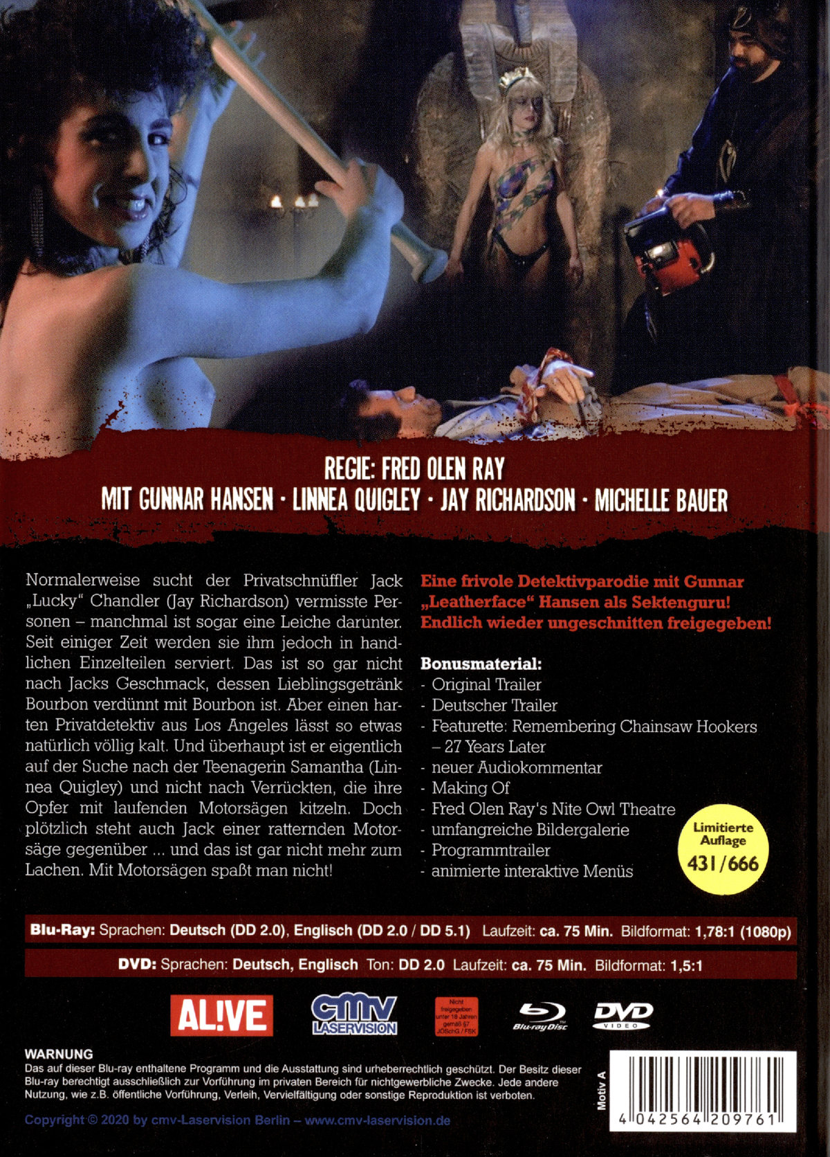 Normalerweise sucht der abgehalfterte Privatschnüffler Jack "Lucky" Chandler (Jay Richardson) vermisste Personen - manchmal ist sogar eine Leiche darunter. Seit einiger Zeit werden sie ihm jedoch in handlichen Einzelteilen serviert. Das ist so gar nicht nach Jacks Geschmack, dessen Lieblingsgetränk Bourbon verdünnt mit Bourbon ist. Aber einen harten Privatdetektiv aus Los Angeles lässt so etwas natürlich völlig kalt. Und überhaupt ist er eigentlich auf der Suche nach der Teenagerin Samantha (Linnea Quigley) und nicht nach Verrückten, die ihre Opfer mit laufenden Motorsägen kitzeln. Doch plötzlich steht auch Jack einer ratternden Motorsäge gegenüber... und das ist gar nicht mehr zum Lachen. Mit Motorsägen spaßt man nicht!
