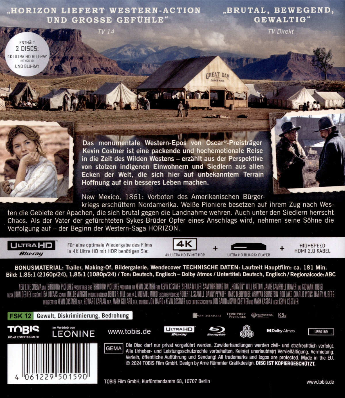 New Mexico, 1861: Vorboten des Amerikanischen Bürgerkriegs erschüttern den Süden Nordamerikas. Weiße Pioniere besetzen auf ihrem Zug nach Westen die Gebiete der Apachen, die sich brutal gegen die Landnahme wehren. Aber auch unter den Siedlern herrscht blutiges Chaos. Als der Vater der gefürchteten Sykes-Brüder Opfer eines Anschlags wird, nehmen seine Söhne die unbamherzige Verfolgung der Attentäterin auf - der Beginn der Western-Saga HORIZON. Das monumentale Western-Epos von Oscar®-Preisträger Kevin Costner ist eine packende und hochemotionale Reise in die Zeit des Wilden Westens - gesehen durch die Augen von Familien, Freunden und Feinden, stolzen indigenen Einwohnern und Neuankömmlingen, die auf ein besseres Leben hoffen.