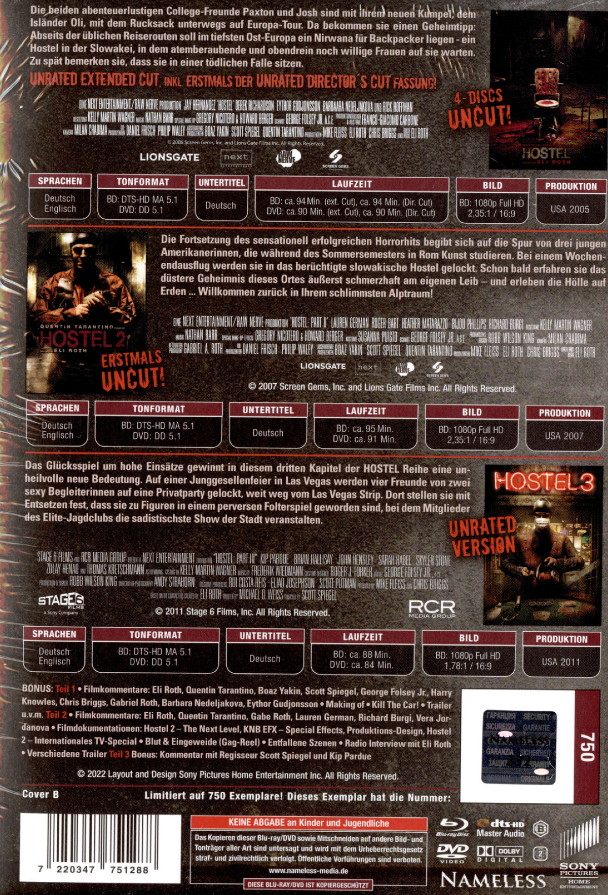 Hostel 1-3 - Uncut Complete Mediabook Collection (DVD+blu-ray) (B)