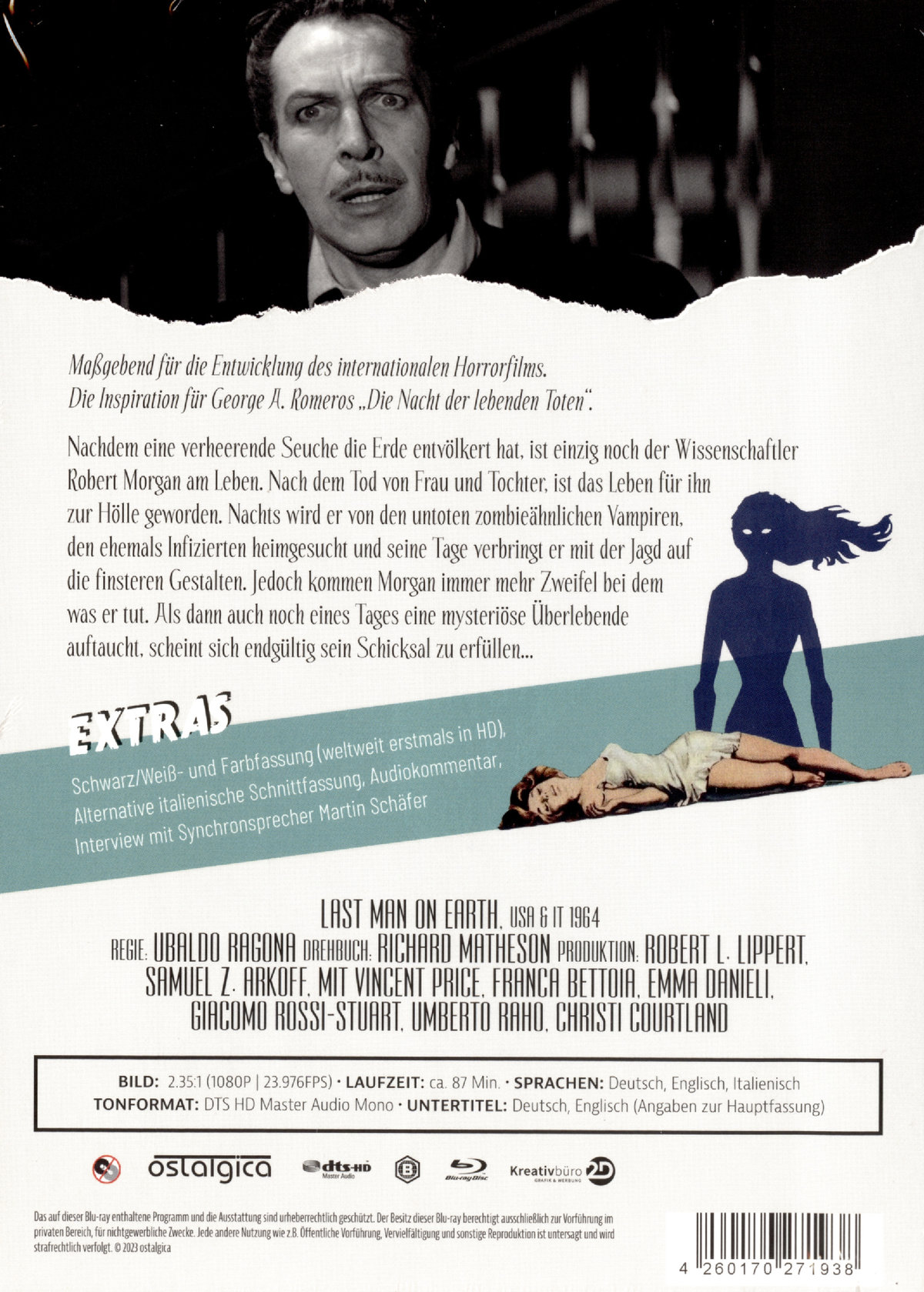 Schwarz/Weiß- und Farbfassung (weltweit erstmals in HD); Alternative italienische Schnittfassung;Audiokommentar;Interview mit Synchronsprecher Martin Schäfer;16 seitiges Booklet;Wendecover mit alternativem Artwork;
