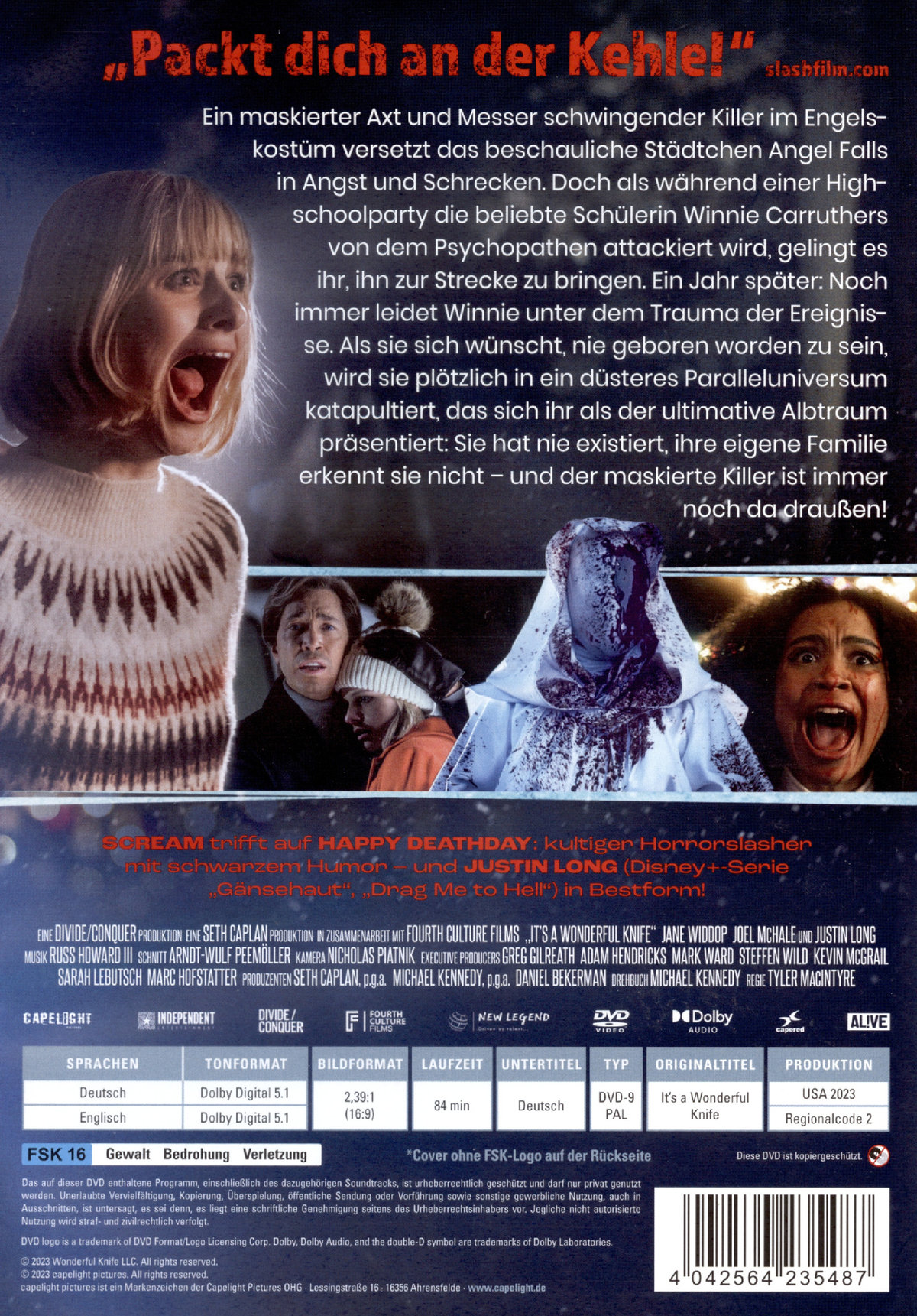 Ein maskierter Axt und Messer schwingender Killer im Engelskostüm versetzt das beschauliche Städtchen Angel Falls in Angst und Schrecken. Doch als während einer Highschoolparty die beliebte Schülerin Winnie Carruthers von dem Psychopathen attackiert wird, gelingt es ihr, ihn zur Strecke zu bringen. Ein Jahr später: Noch immer leidet Winnie unter dem Trauma der Ereignisse. Als sie sich wünscht, nie geboren worden zu sein, wird sie plötzlich in ein düsteres Paralleluniversum katapultiert, das sich ihr als der ultimative Albtraum präsentiert: Sie hat nie existiert, ihre eigene Familie erkennt sie nicht - und der maskierte Killer ist immer noch da draußen!