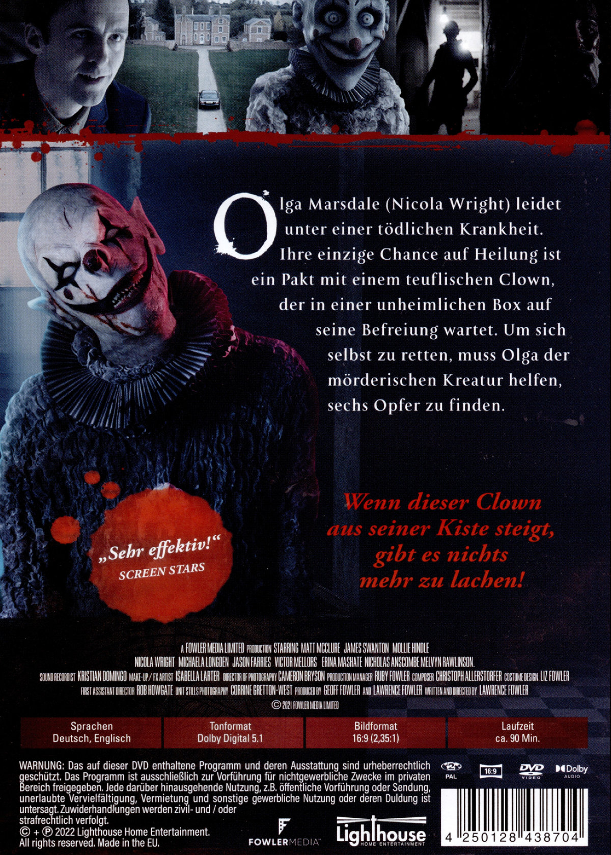 Olga Marsdale (Nicola Wright) leidet unter einer tödlichen Krankheit. Ihre einzige Chance auf Heilung ist ein Pakt mit einem teuflischen Clown, der in einer unheimlichen Box auf seine Befreiung wartet. Um sich selbst zu retten, muss Olga der mörderischen Kreatur helfen, sechs Opfer zu finden.