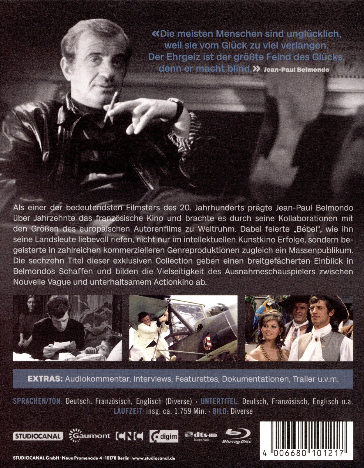 Als einer der bedeutendsten Filmstars des 20. Jahrhunderts prägte Jean-Paul Belmondo über Jahrzehnte das französische Kino und brachte es durch seine Kollaborationen mit den Größen des europäischen Autorenfilms zu Weltruhm. Dabei feierte "Bébel", wie ihn seine Landsleute liebevoll riefen, jedoch nicht nur im intellektuellen Kunstkino Erfolge, sondern begeisterte in zahlreichen kommerzielleren Genreproduktionen zugleich ein Massenpublikum. Die sechzehn Titel dieser exklusiven Edition geben einen breitgefächerten Einblick in Belmondos Schaffen und bilden zwischen Nouvelle Vague und unterhaltsamem Actionkino die Vielseitigkeit des Ausnahmeschauspielers ab. (16 Blu-rays)