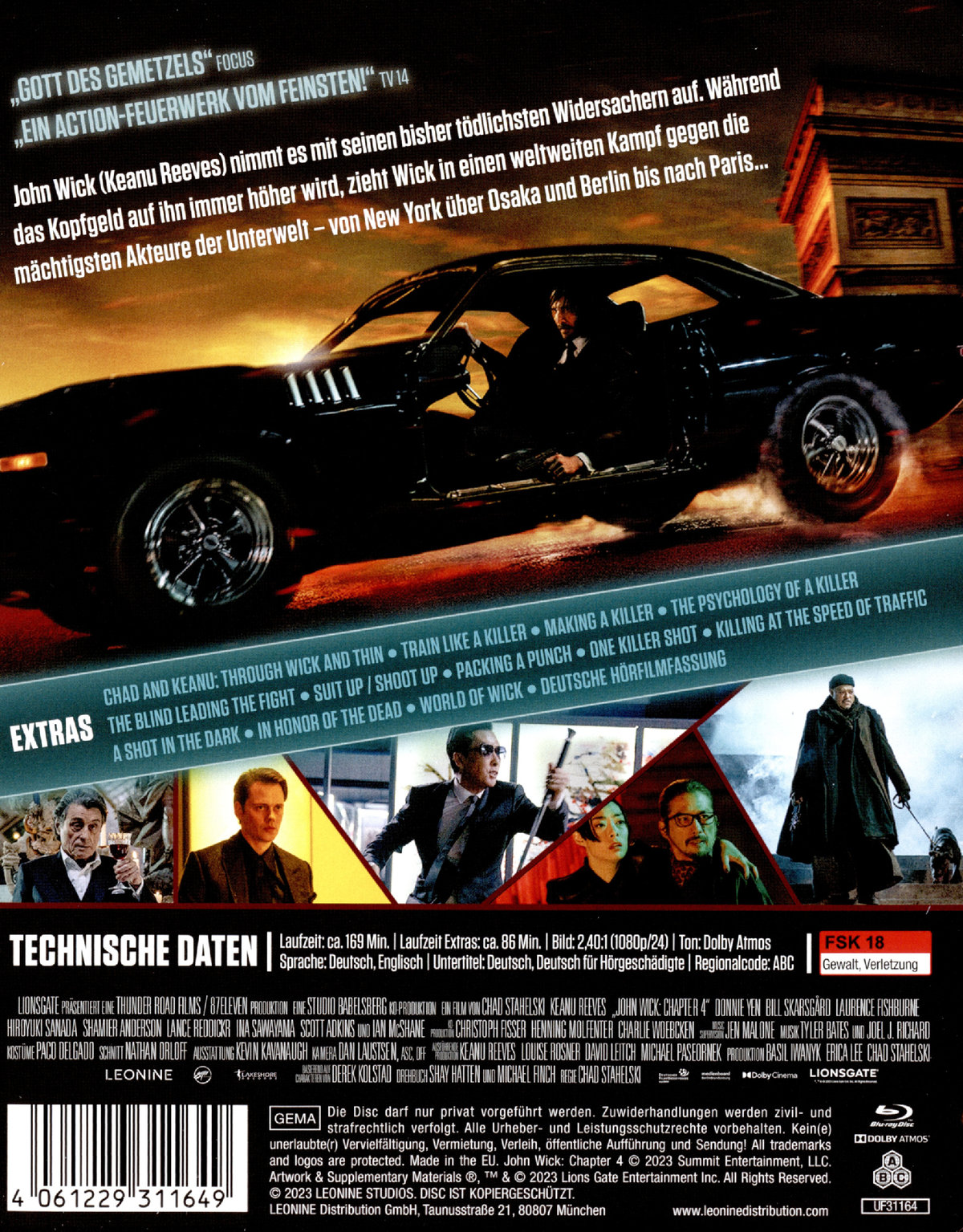 An der Seite von Keanu Reeves alias John Wick sind auch in Kapitel 4 wieder Laurence Fishburne ("Ant-Man And The Wasp"), Lance Reddick ("Godzilla vs. Kong", "Angel Has Fallen") und Ian McShane ("Pirates Of The Caribbean - Fremde Gezeiten") zu sehen. Ergänzt wird der Cast u.a. durch Bill Skarsgård ("Es", "Deadpool 2"), Donnie Yen ("Rogue One: A Star Wars Story", "xXx: Die Rückkehr des Xander Cage") und Scott Adkins ("Doctor Strange", "Das Bourne Ultimatum"). Regie führt erneut Chad Stahelski.