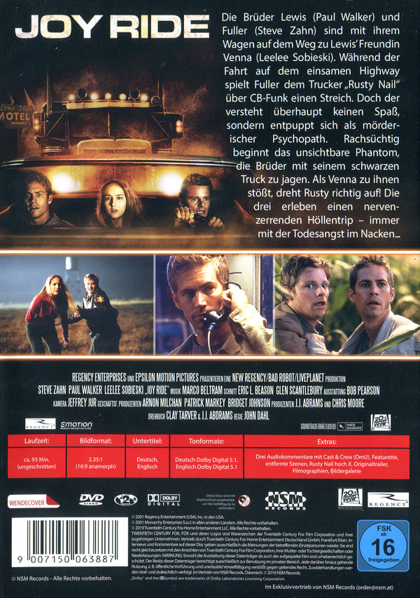 Die Brüder Lewis (Paul Walker) und Fuller (Steve Zahn) sind mit ihrem Wagen auf dem Weg zu Lewis Freundin Veena (Leelee Sobieski). Während der Fahrt auf dem einsamen Highway spielt Fuller dem Trucker "Rusty Nail" über CB-Funk einen Streich. Doch der versteht überhaupt keinen Spaß, sondern entpuppt sich als mörderischer Psychopath. Rachsüchtig beginnt das unsichtbare Phantom, die Brüder mit seinem schwarzen Truck zu jagen. Als Veena zu ihnen stößt, dreht Rusty richtig auf! Die drei erleben einen nervenzerrenden Höllentrip - immer mit der Todesangst im Nacken ...