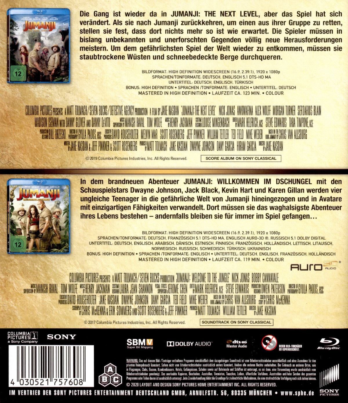 Produktinformationen "Jumanji - Willkommen im Dschungel und Jumanji - The Next Level (blu-ray)"