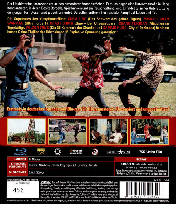 Der Liquidator ist unterwegs um seinen ermordeten Vater zu rächen. Er muss gegen eine Unterweltmafia in Hong Kong antreten, in deren Besitz Bordelle, Spielbanken und ein Rauschgiftring sind. Er findet zu seiner Unterstützung den jungen Pai. Dieser wird jedoch ermordet. Daraufhin entbrennt ein brutaler Kampf auf Leben und Tod! Die Superstars des Kampfkunstfilms: CHEN SING (Das Schwert des gelben Tigers), MICHAEL CHAN WAI-MAN (Ultra Force 1), CHAO HSIUNG (Zhao - Der Unbesiegbare), CHANG PEI-SHAN (Mädchen im Tigerkäfig), WILSON TONG (Die 36 Kammern der Shaolin) und SAMMO HUNG (City of Darkness) in einem harten China-Thriller der Härteklasse 1! Explosive Spannung garantiert! Erstmals in deutscher Sprache auf Blu-ray! 2K-HD-remastered. Unzensiert und ungeschnitten!