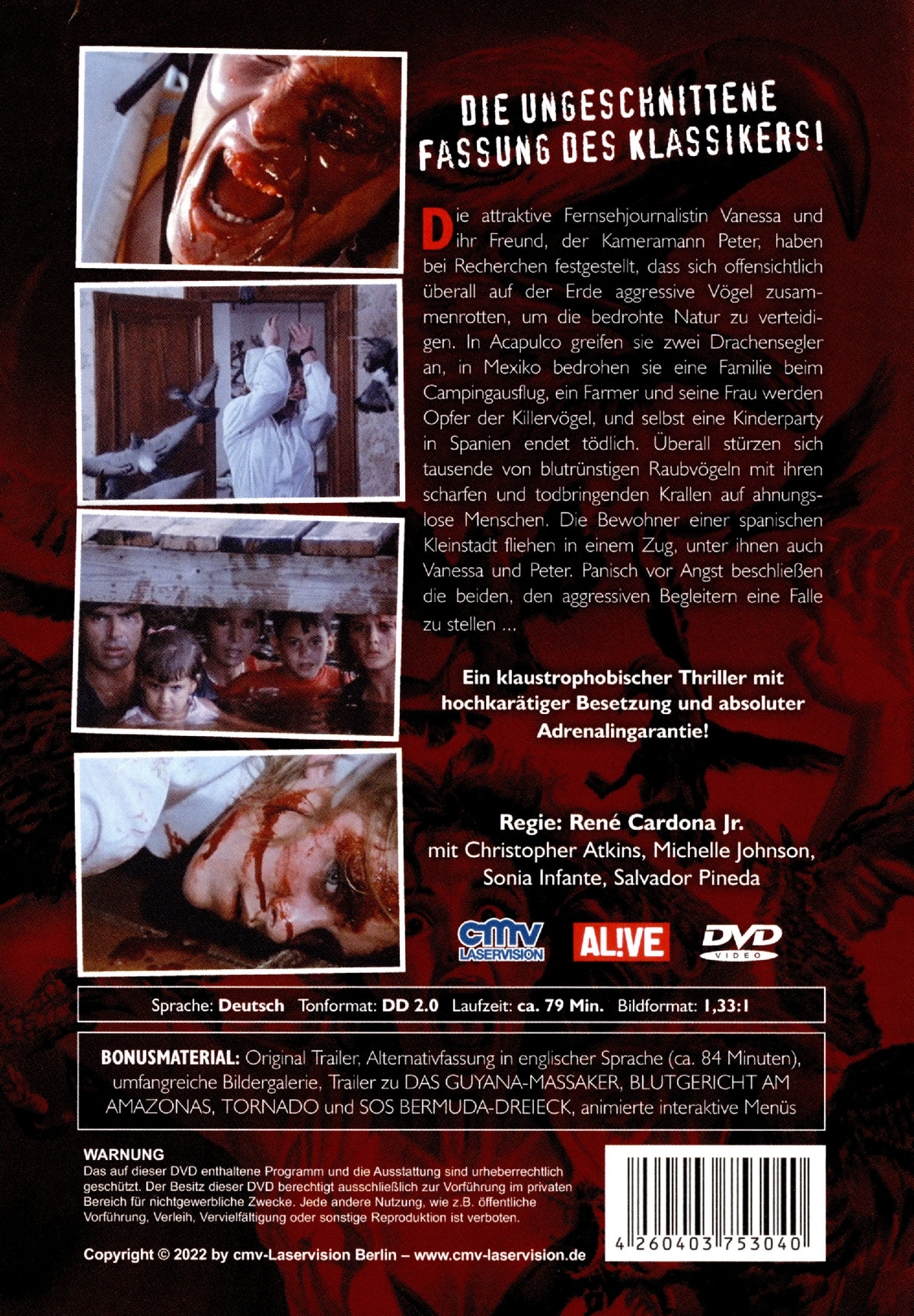 Die attraktive Fernsehjournalistin Vanessa und ihr Freund, der Kameramann Peter, haben bei Recherchen festgestellt, dass sich offensichtlich überall auf der Erde aggressive Vögel zusammenrotten, um die bedrohte Natur zu verteidigen. In Acapulco greifen sie zwei Drachensegler an, in Mexiko bedrohen sie eine Familie beim Camping-Ausflug, ein Farmer und seine Frau werden Opfer der Killervögel, und selbst eine Kinderparty in Spanien endet tödlich. Überall stürzen sich tausende von blutrünstigen Raubvögeln mit ihren scharfen und todbringenden Krallen auf ahnungslose Menschen. Die Bewohner einer spanischen Kleinstadt fliehen in einem Zug, unter ihnen auch Vanessa und Peter. Panisch vor Angst beschließen die beiden, den aggressiven Begleitern eine Falle zu stellen ...